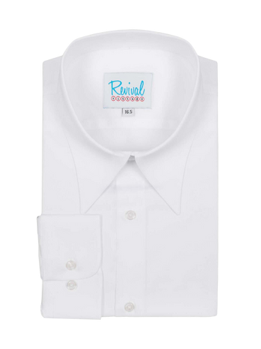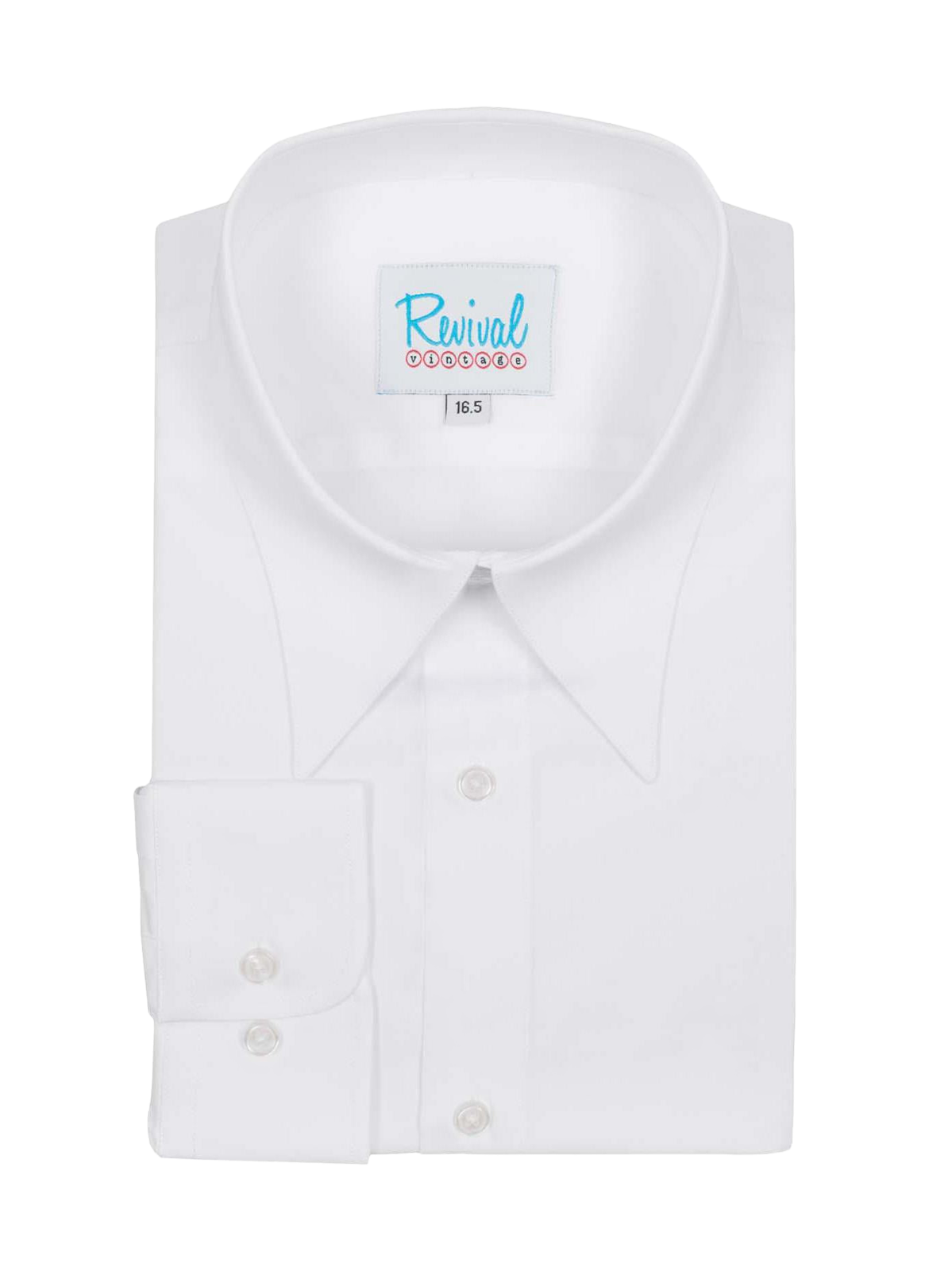Revival 1940s Vintage Style Spearpoint Collar Shirt with Barrel Cuff - White
