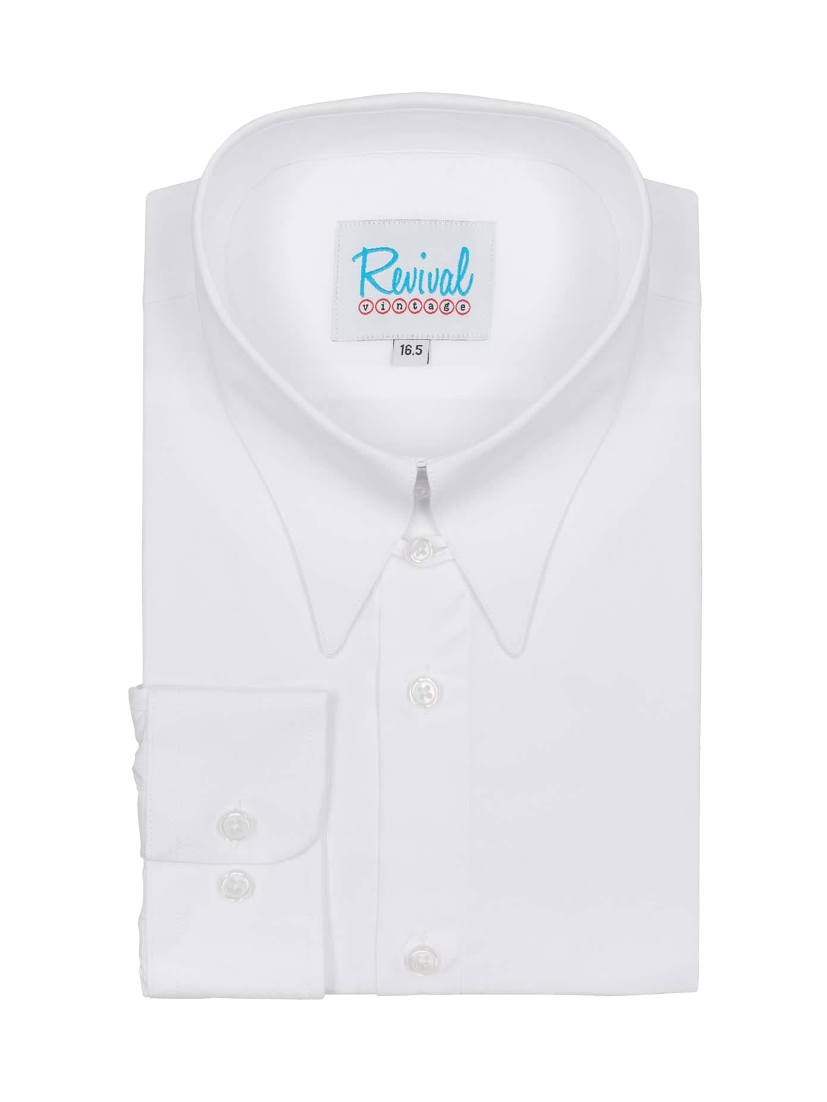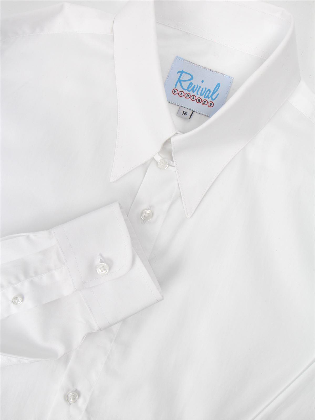 Revival Vintage Style Spearpoint Shirt with Tab Collar and Barrel Cuff - White