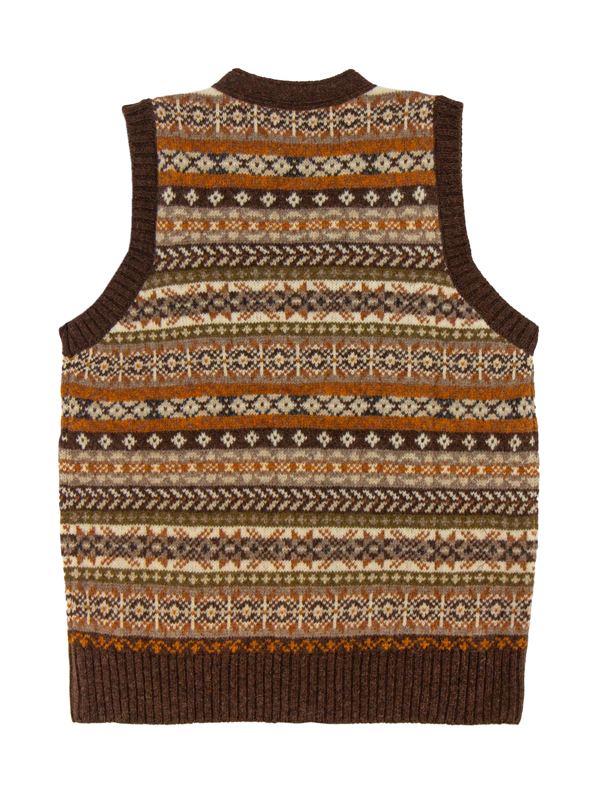 Scottish Wool Buttoned Fairisle Tank Top - Coffee Brown