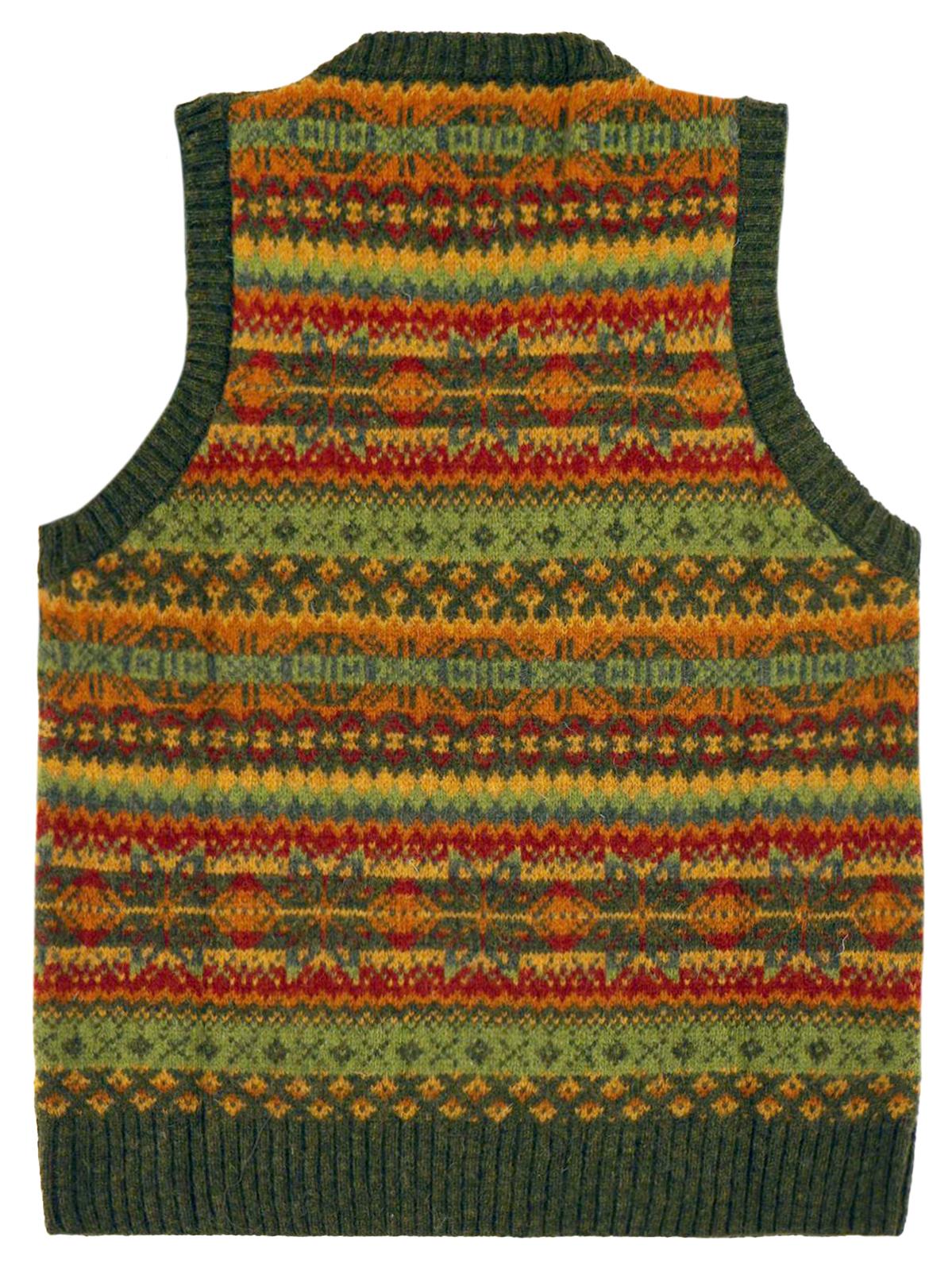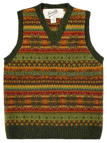 Scottish Wool Fairisle Knit Tank Top in Pineshadow Green