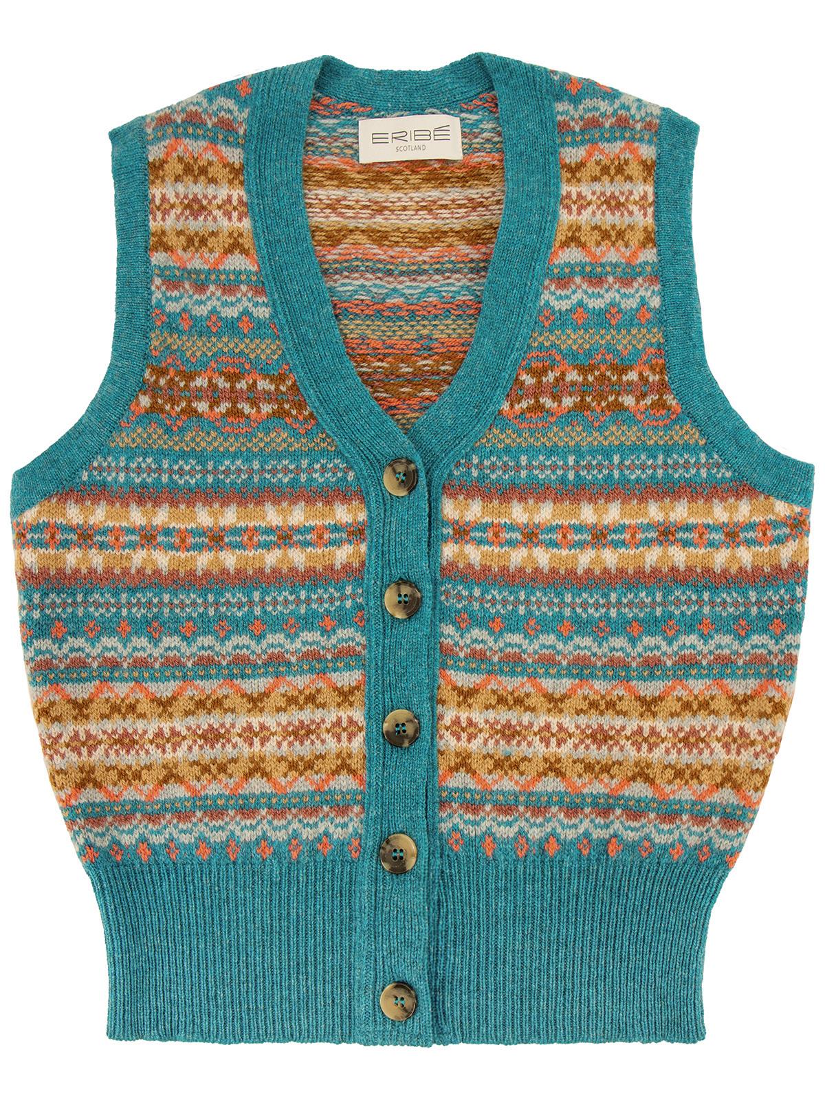 Scottish Wool Fairisle Ladies' Waistcoat in Topaz Blue