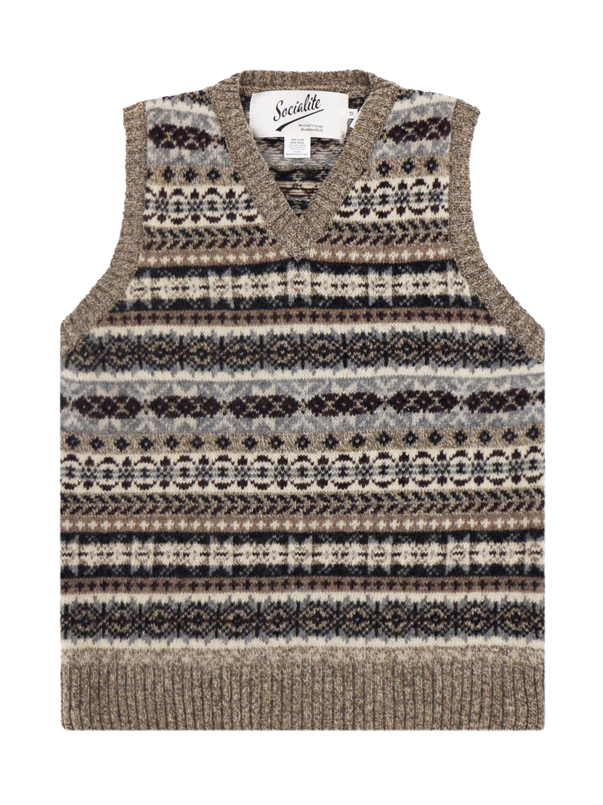 Scottish Wool Fairisle Tank Top in Mushroom Grey