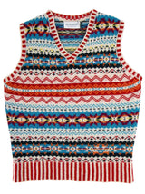 Vintage Style Shetland Wool Fair Isle Vest in Firecracker Red