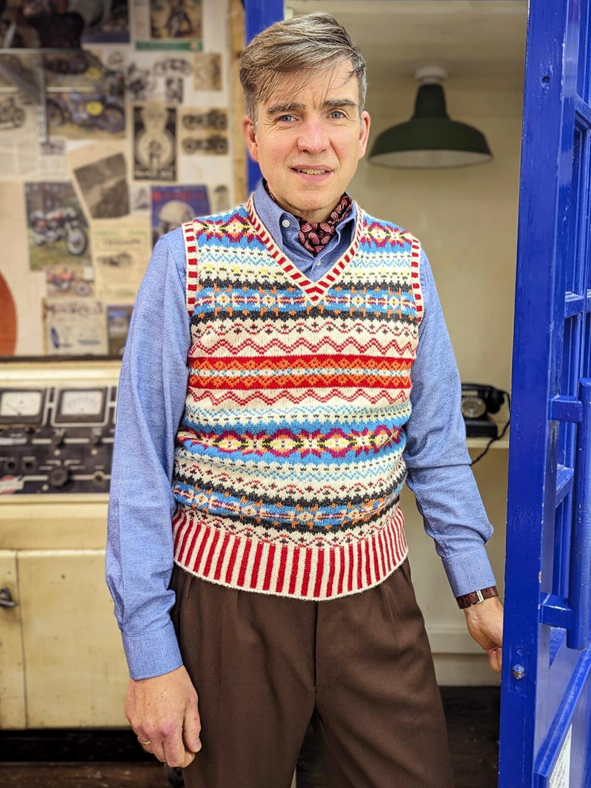 Vintage Style Shetland Wool Fair Isle Vest in Firecracker Red