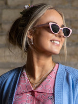 Vintage-style sunnies in a classic slim cateye shape with pink frame.