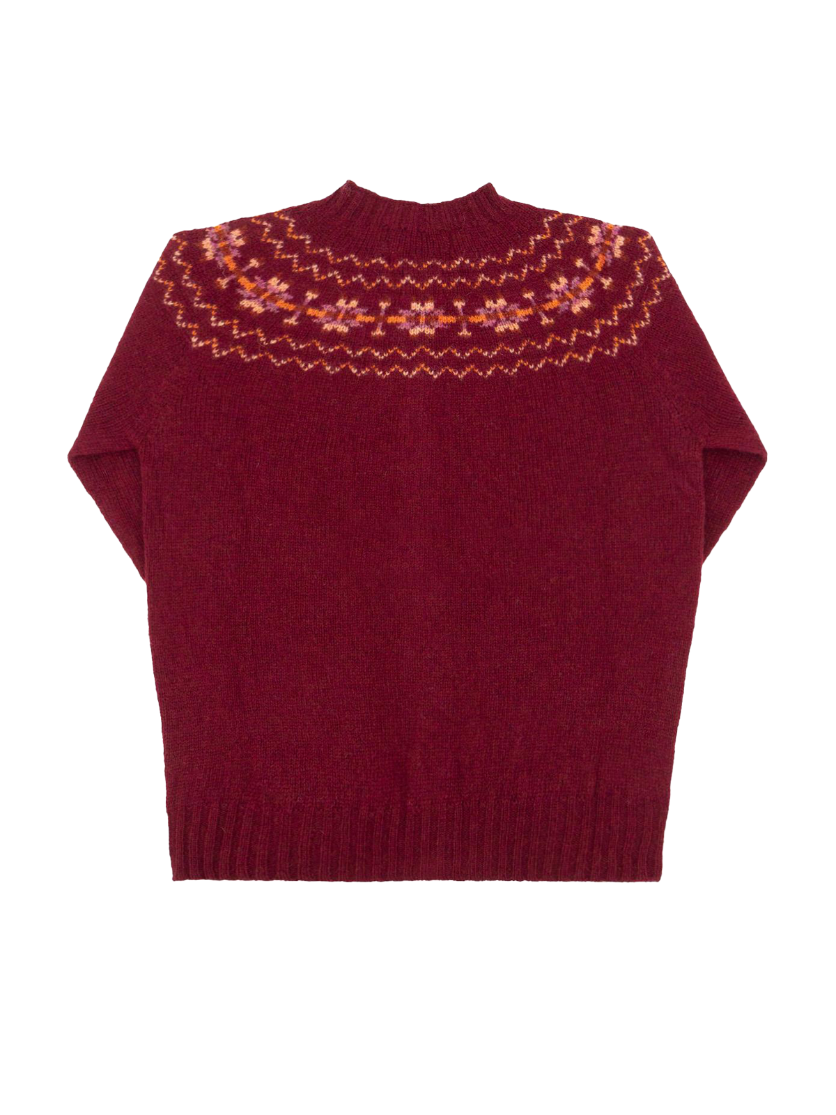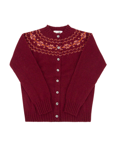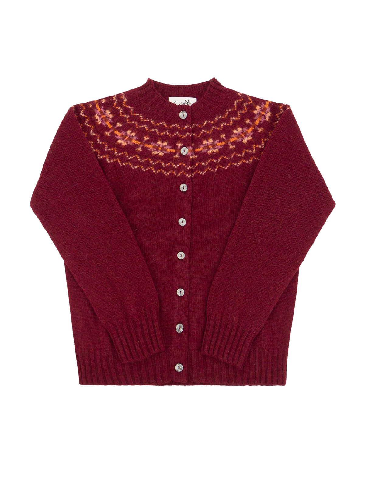 Socialite Pure Wool Fairisle Cardigan - Claret