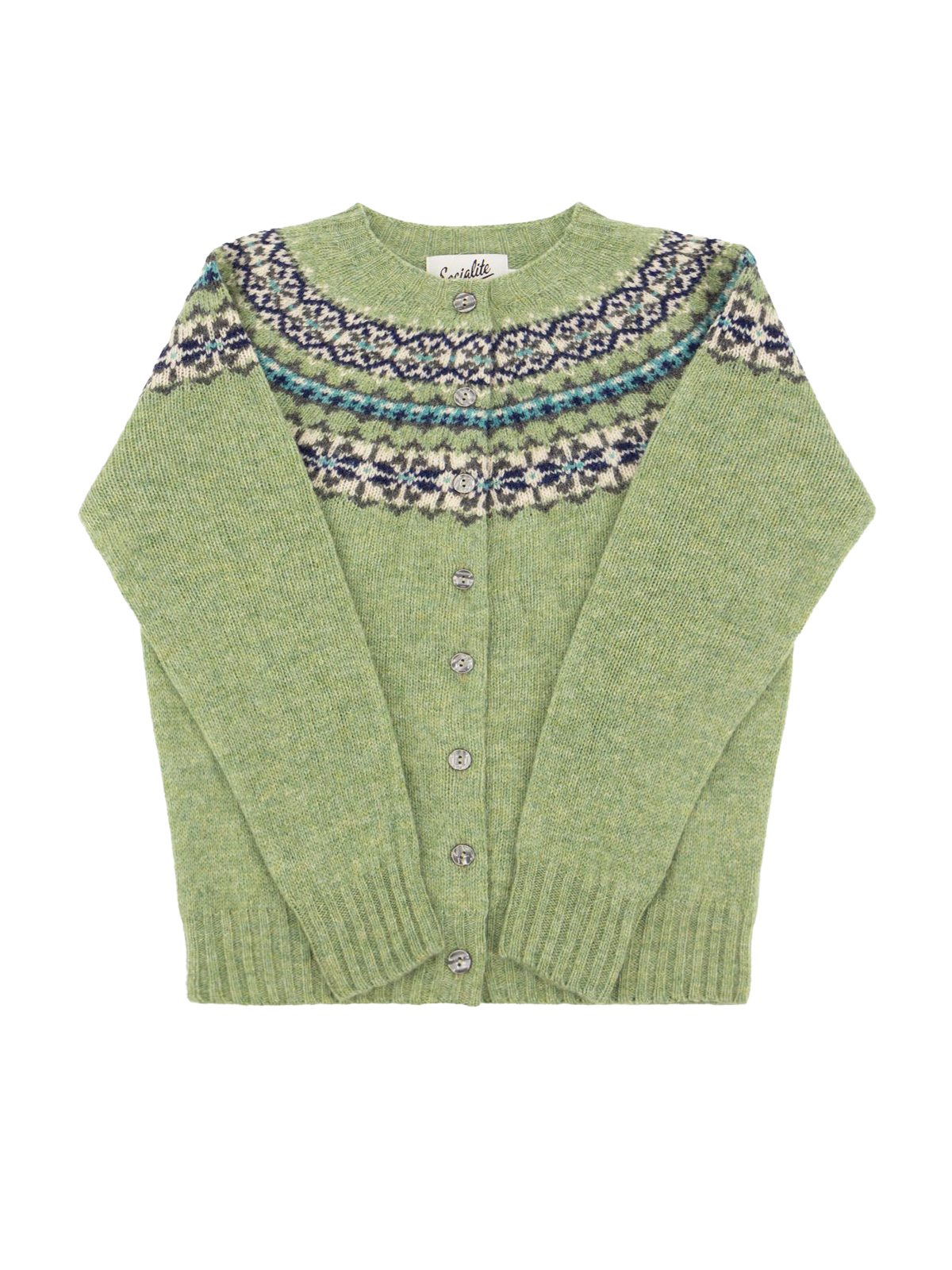 Socialite Pure Wool Fairisle Cardigan - Sage