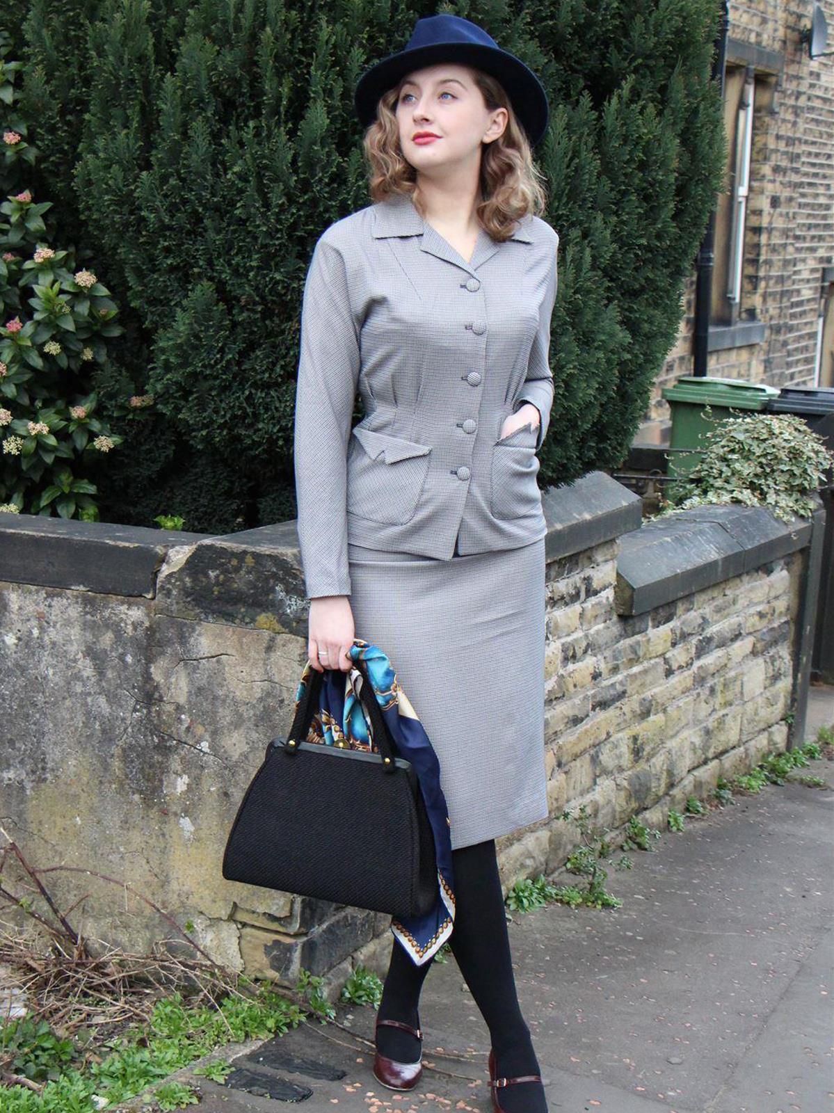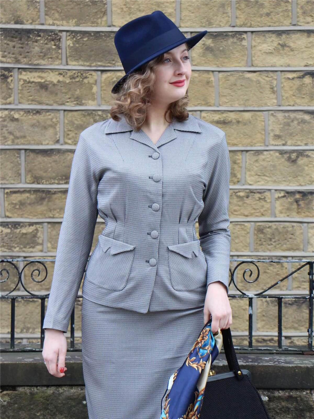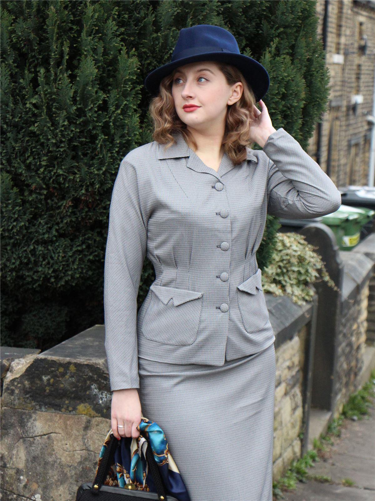 1940s Vintage Victory Skirt Suit in Grey Check