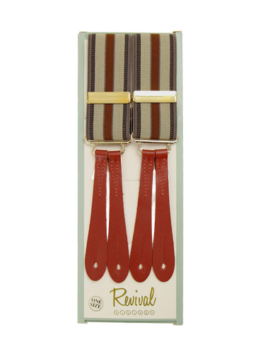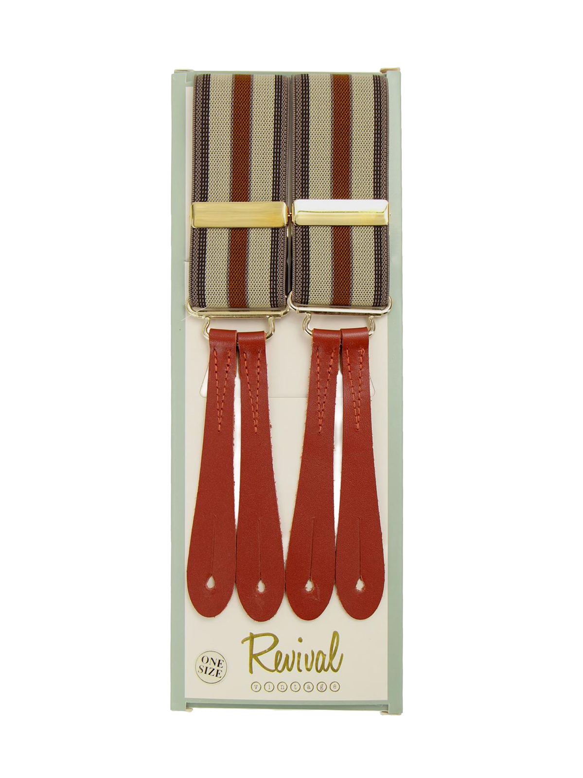 Tan & Cream Stripe 1940s Style Braces with Leather Loops