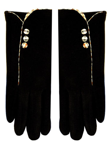 Tartan Trim Black Vintage Style Winter Gloves