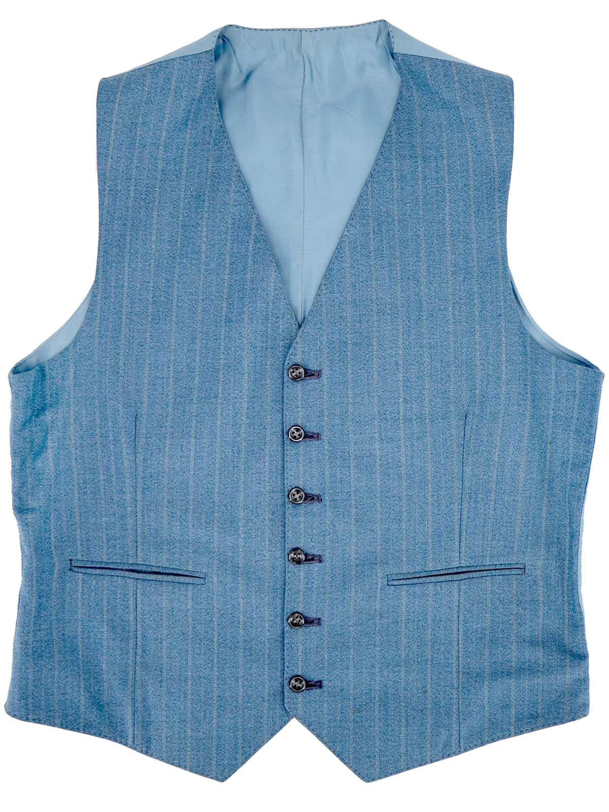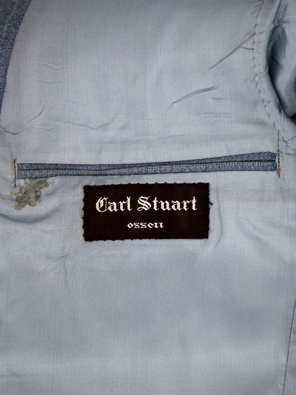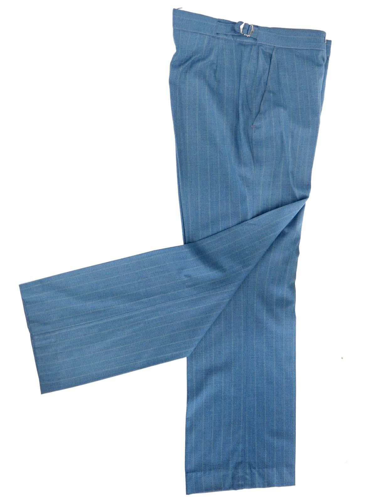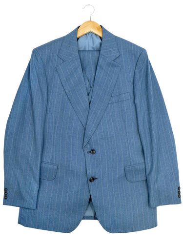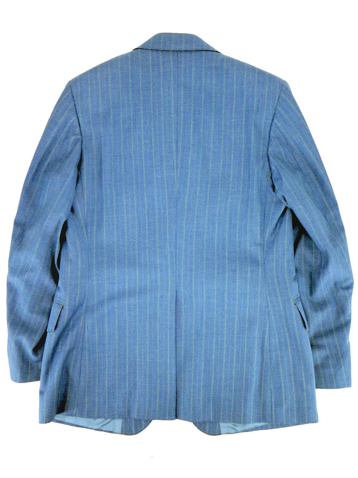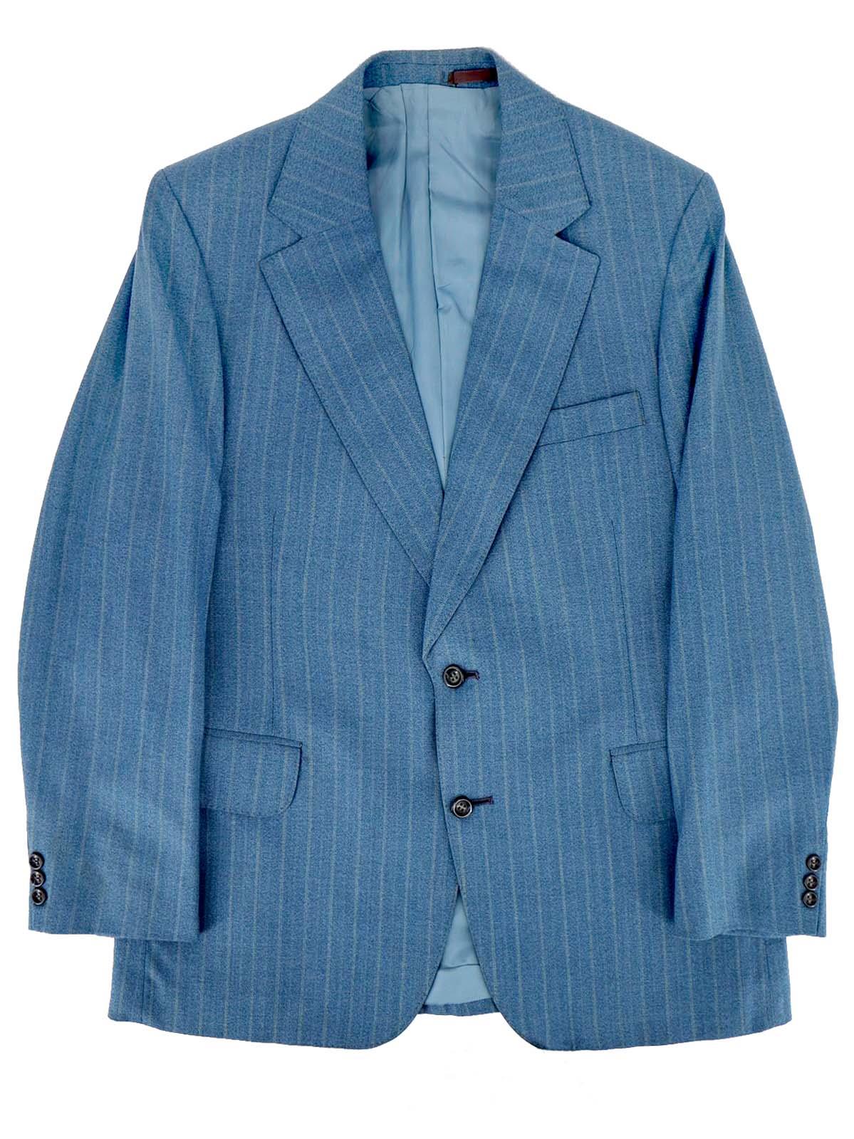 True vintage suit from Carl Stuart, in a medium blue shade with pale pinstripes.
