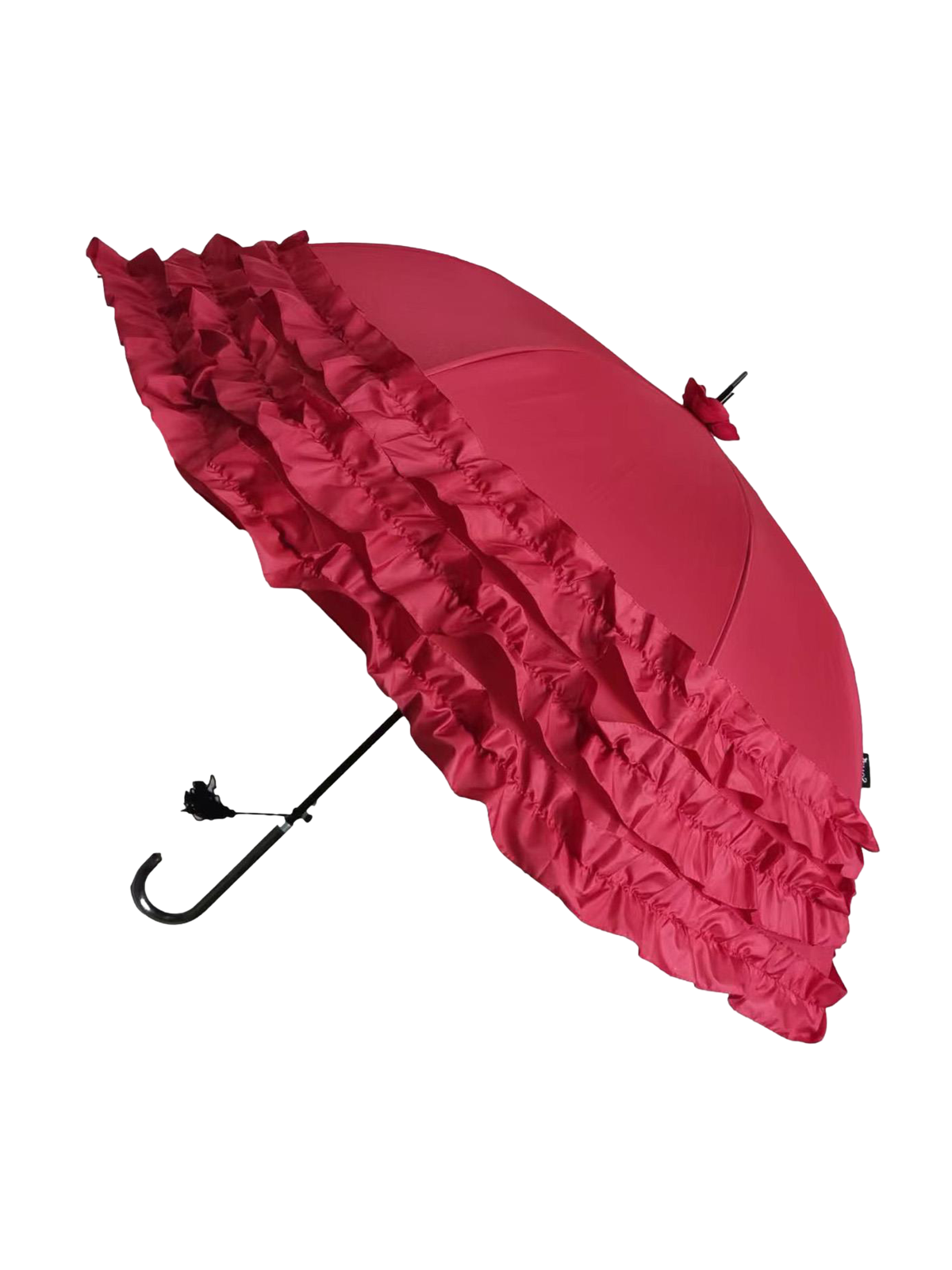 Triple Frill Vintage Style Boutique Umbrella - Red