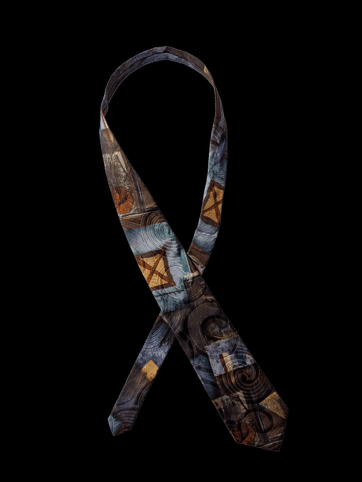 True Vintage Abstract Blue & Brown Silk Tie