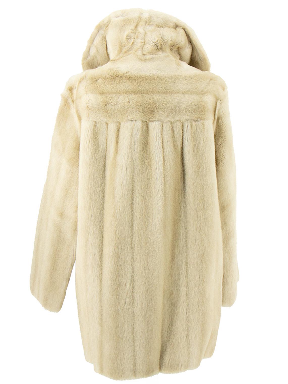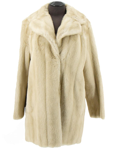 A vintage white or cream plush faux fur coat. Fully lined in a mushroom-coloured satin. The wide lapels create a real vintage statement and look fabulous pulled up for an alternative look.