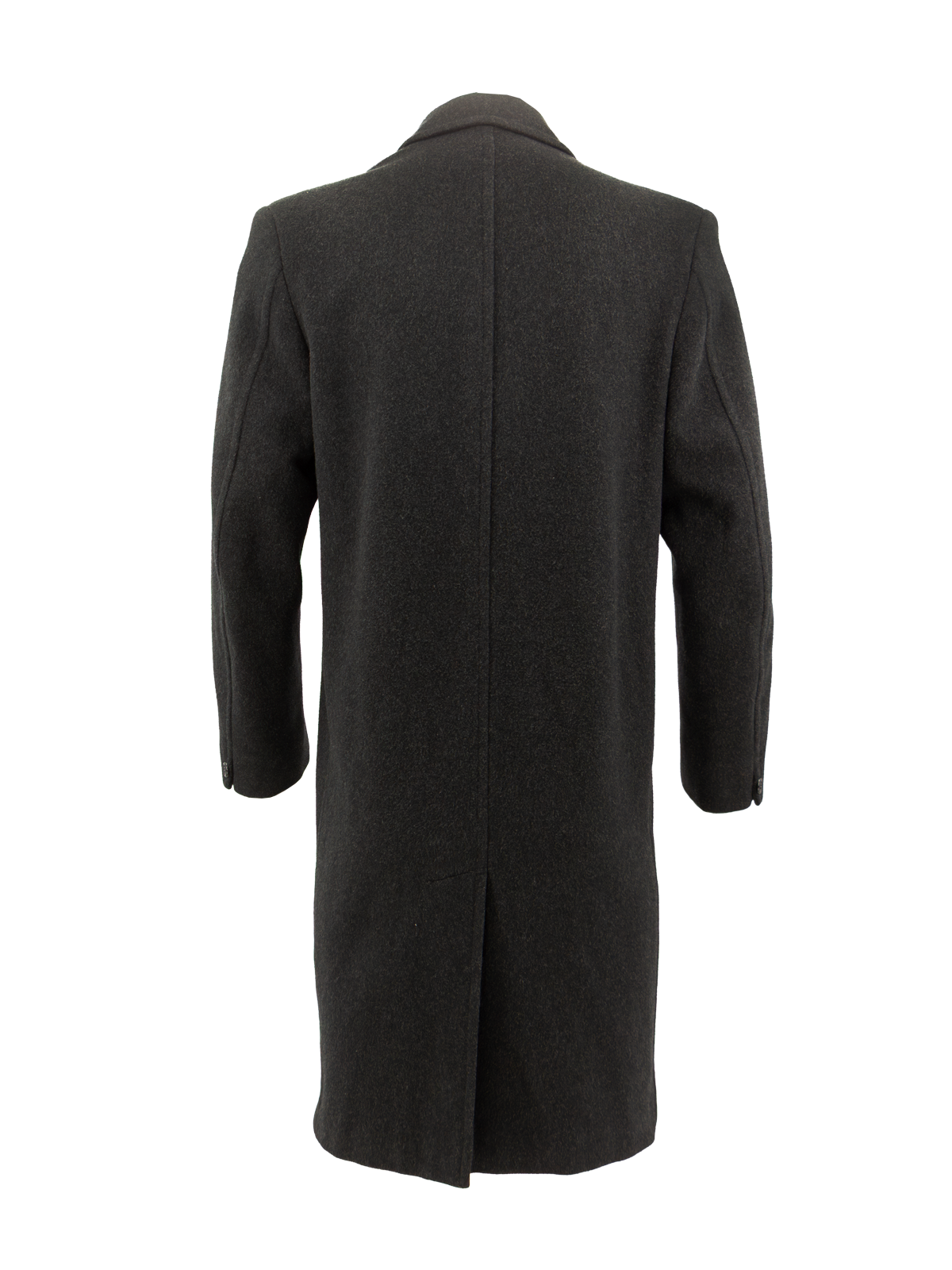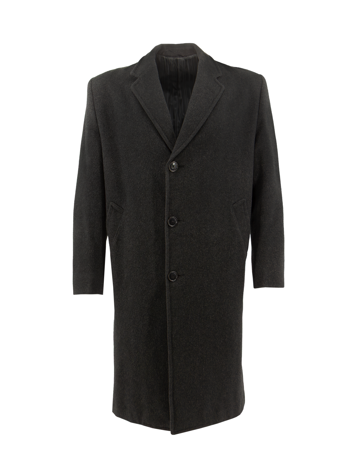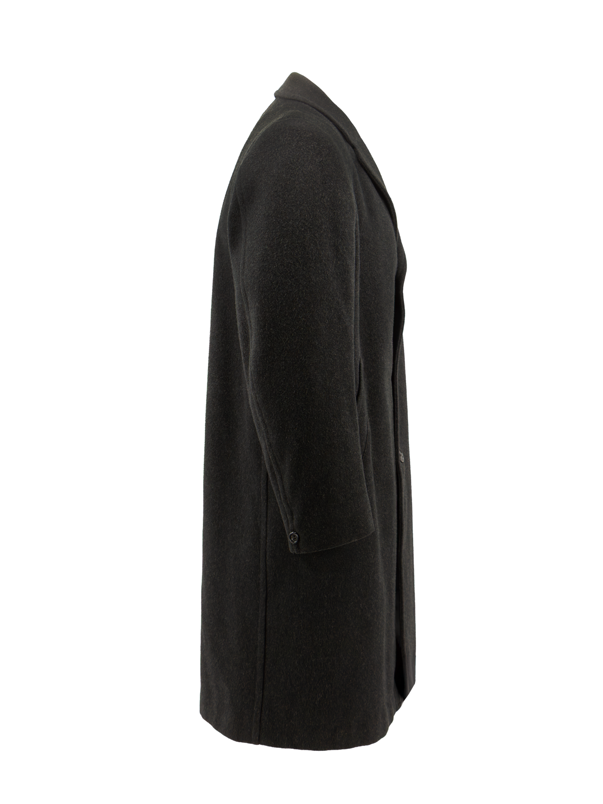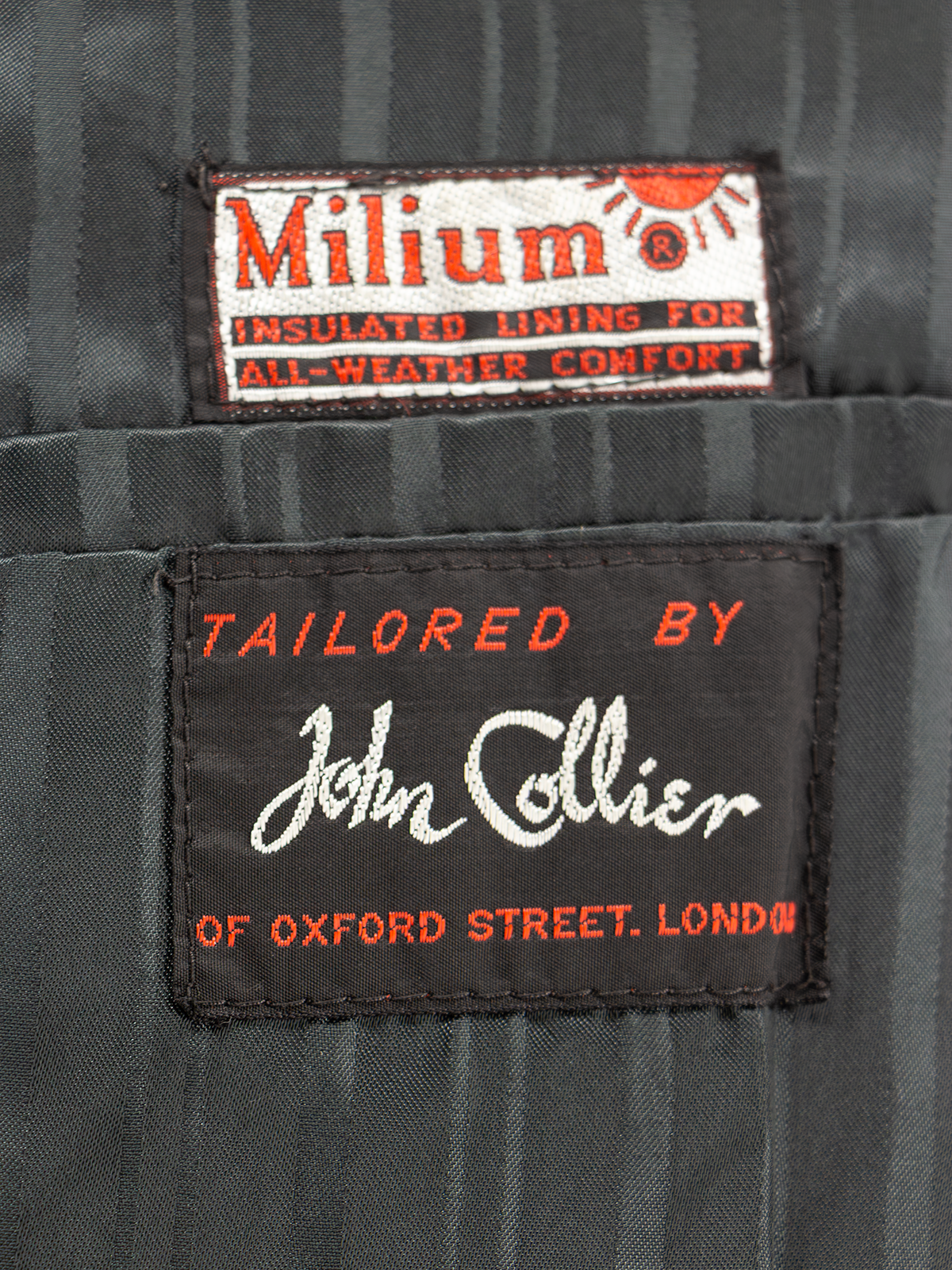 A true vintage overcoat made by John Collier of Oxford Street, London. In deep charcoal (almost black) wool, with insulated lining for heat retention.