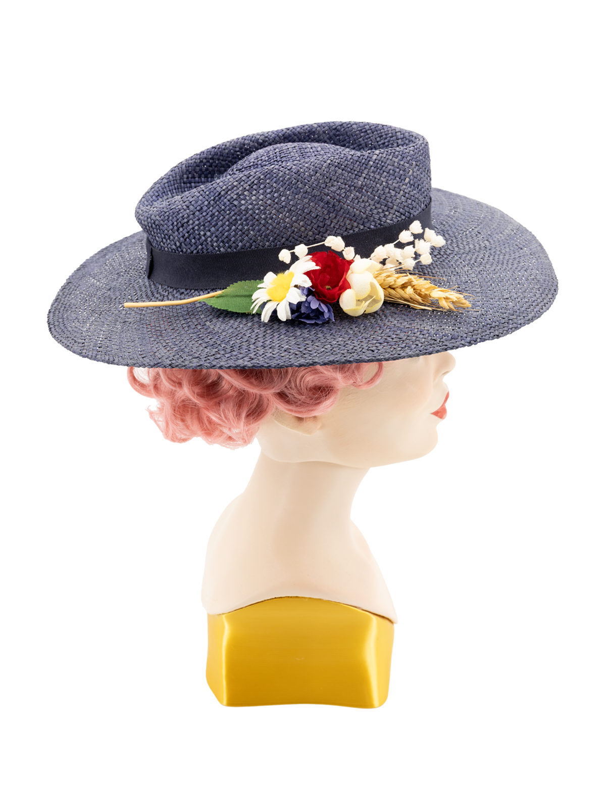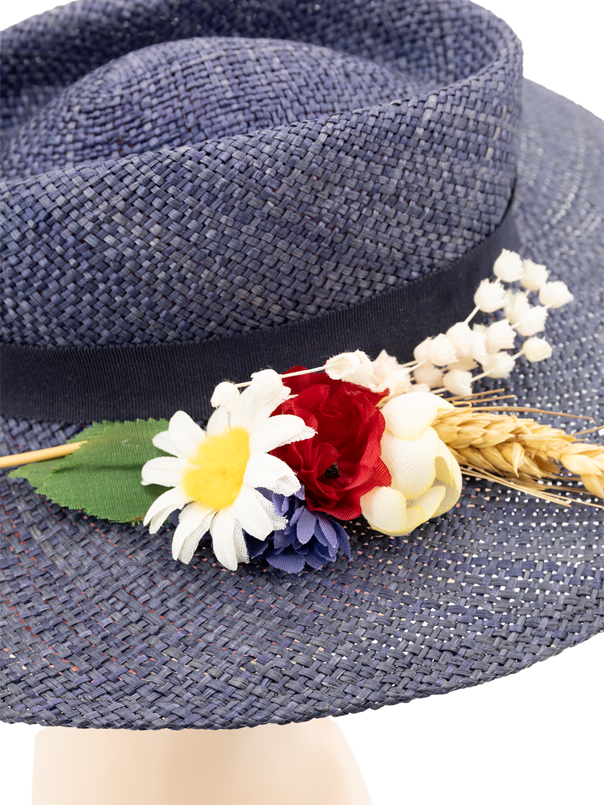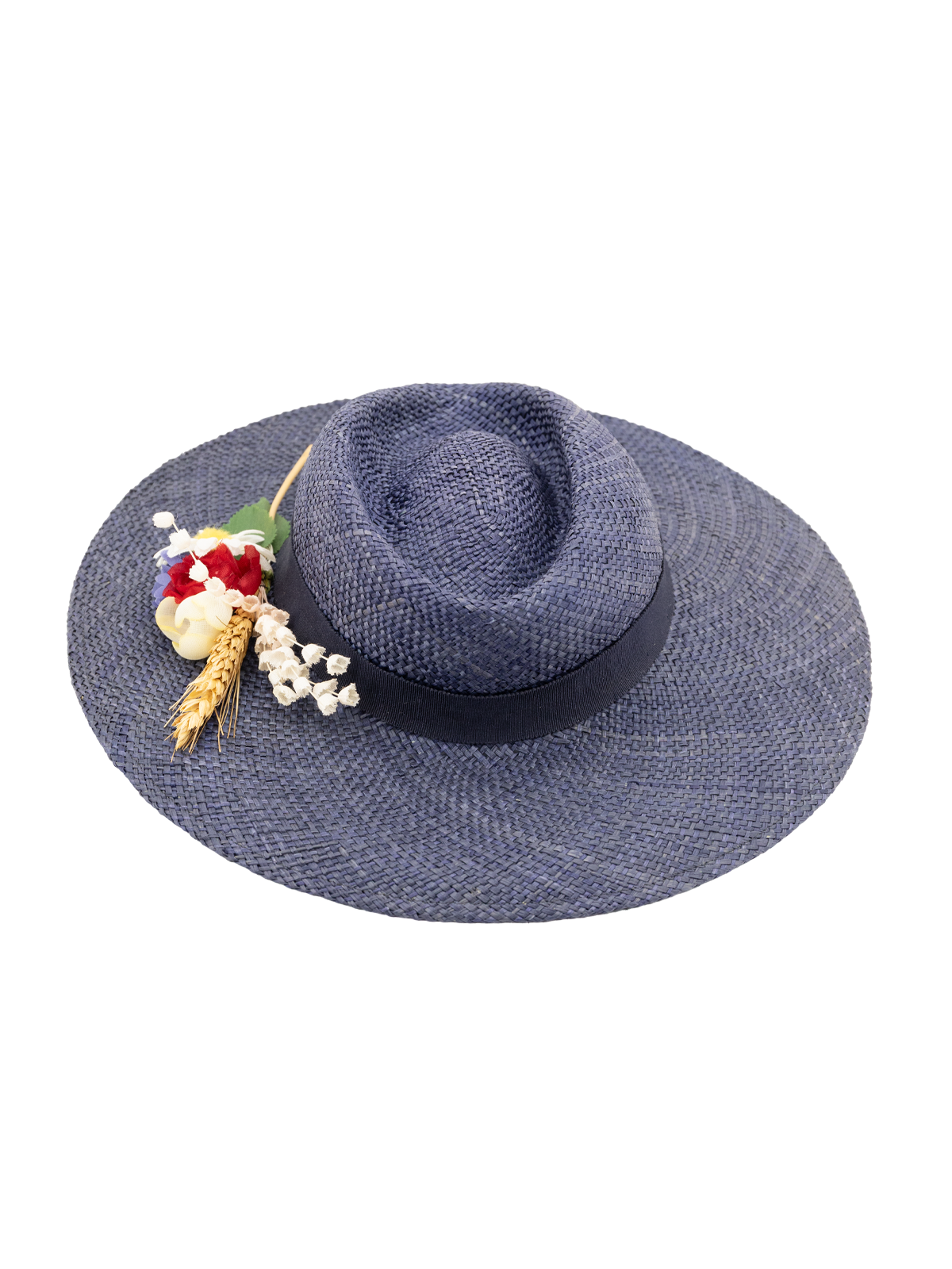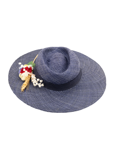 True Vintage Meadow Floral Straw Hat - Navy