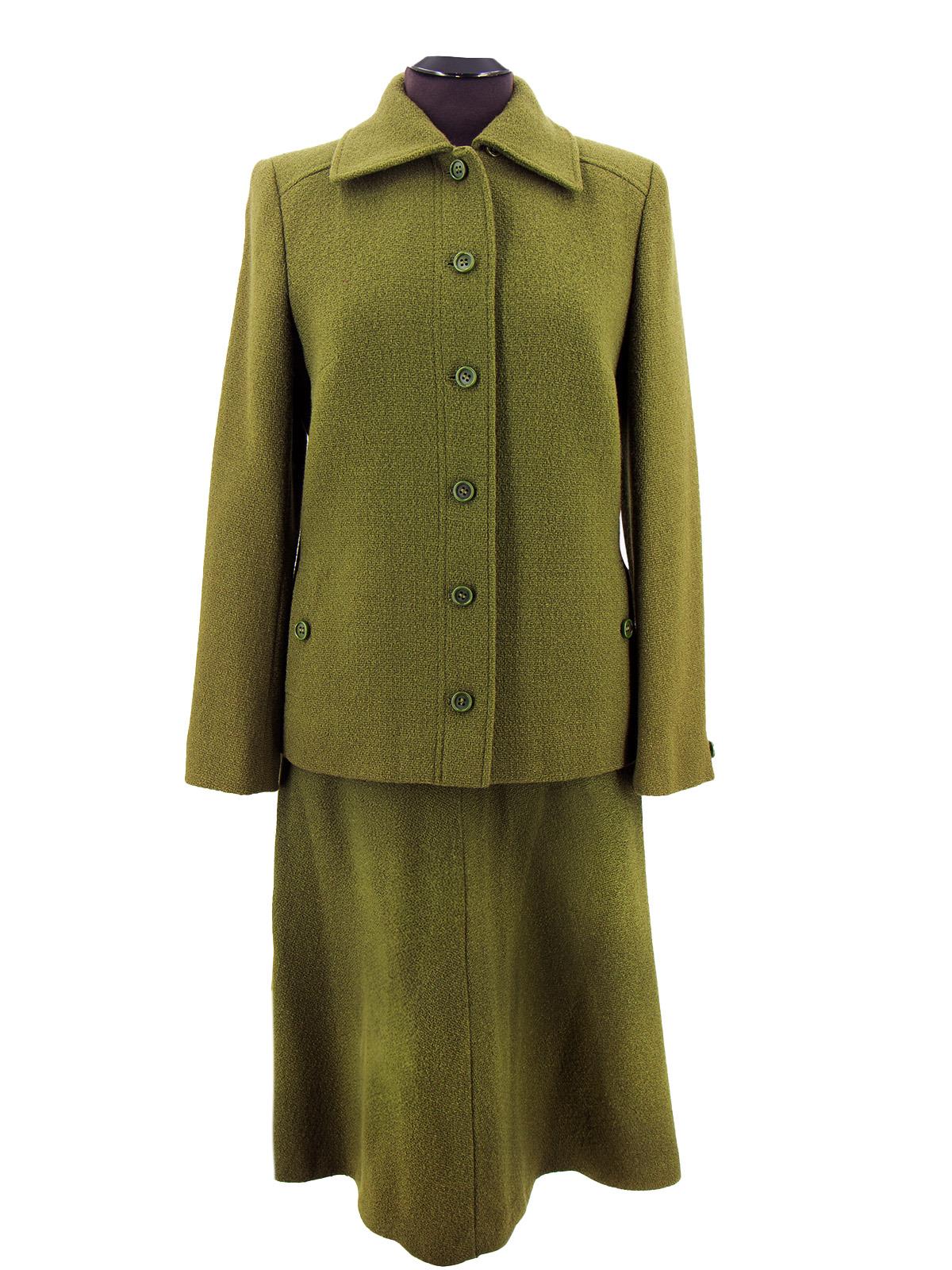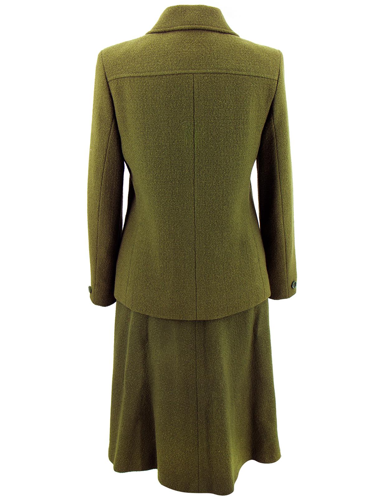 This is an olive green, vintage skirt suit, from Jaeger. Made from 100% wool, this is a fabulous quality ensemble.