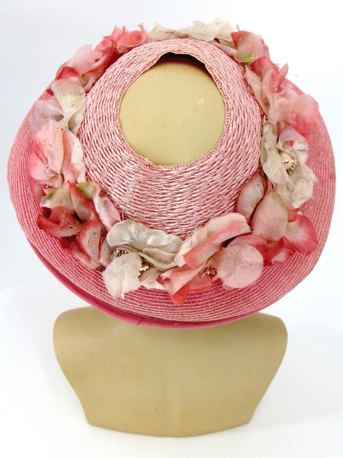 True Vintage Pink Floral Open Crown Hat