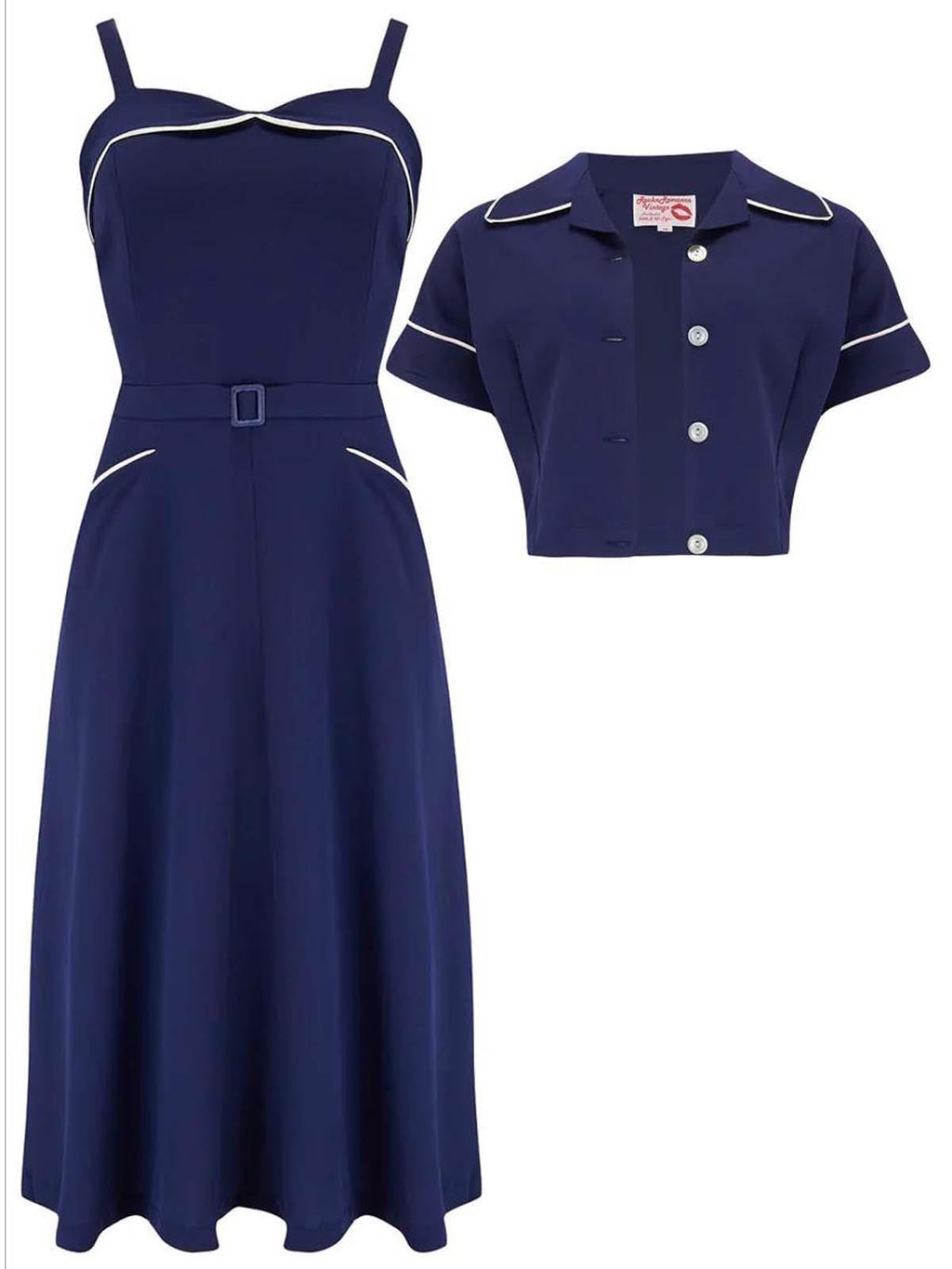 Two Piece Vintage Style Navy Dress & Bolero Set