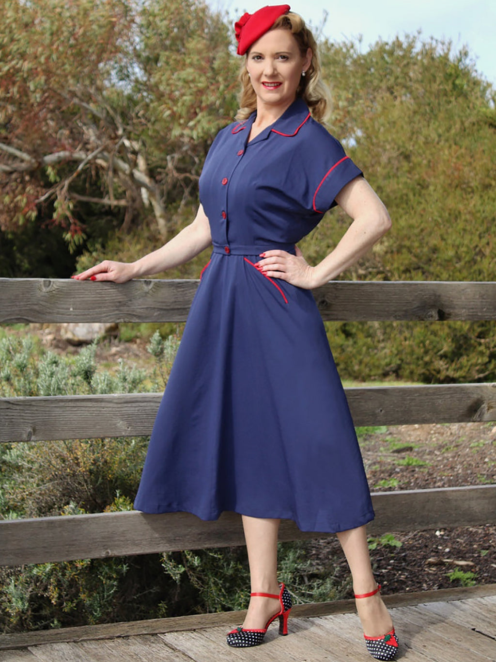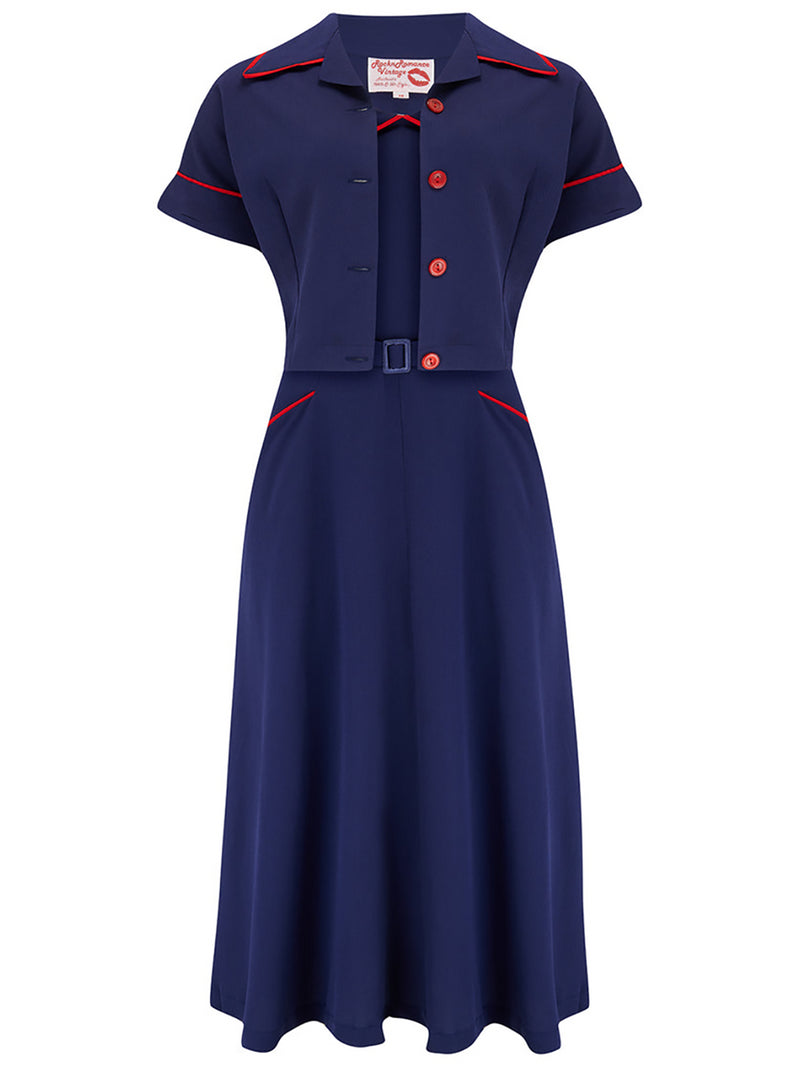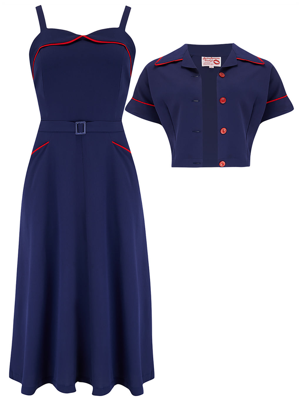 Two Piece Vintage Style Navy & Red Dress & Bolero Set