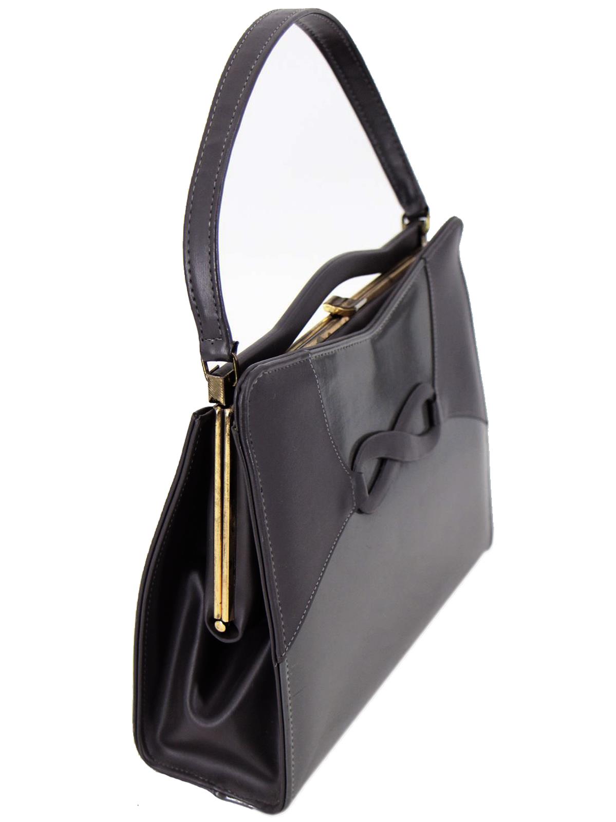 Two-Tone Grey Leather Vintage Air-Step Handbag