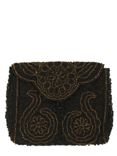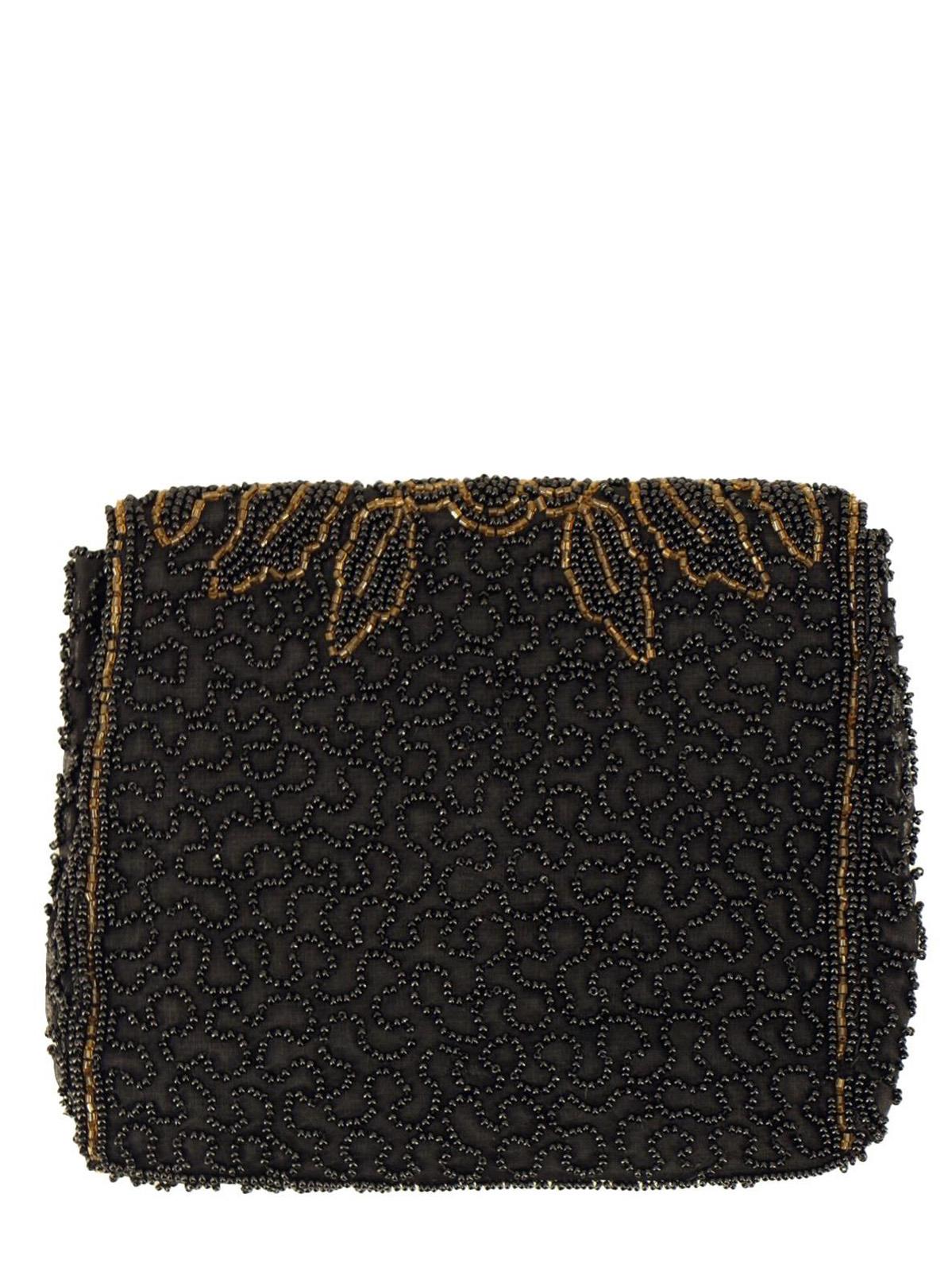 This vintage clutch bag originates from the early 20th century, 30s or 40s era. It features a striking beaded design.