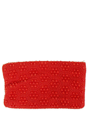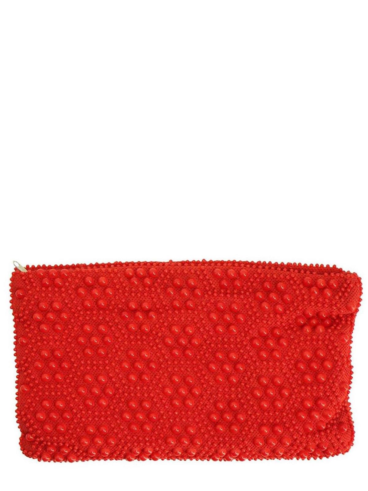 This vintage clutch bag has oodles of 60s charm. Featuring a repeating glue bead pattern. Bright red shade.