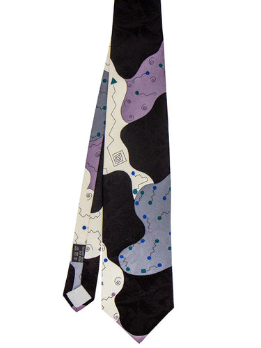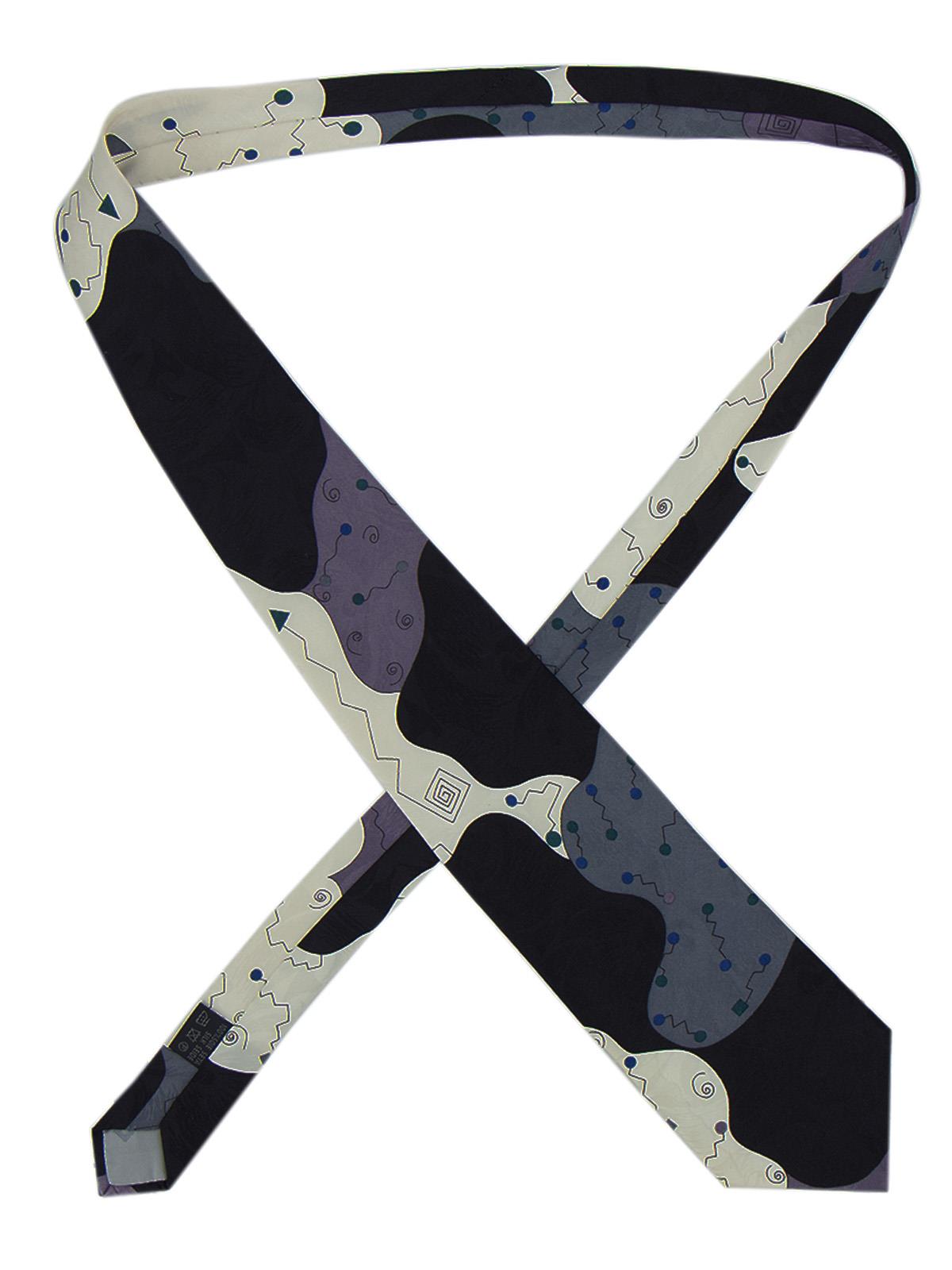A really beautiful 1940s 1950s style Jose Picador silk tie. A high-quality weave with an interwoven sheen and abstract pattern in grey, black, cream and lilac. This is a real collectors piece and a striking addition to your vintage wardrobe.