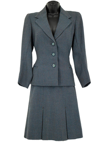 Vintage 1950s Navy Blue Spotty Skirt Suit