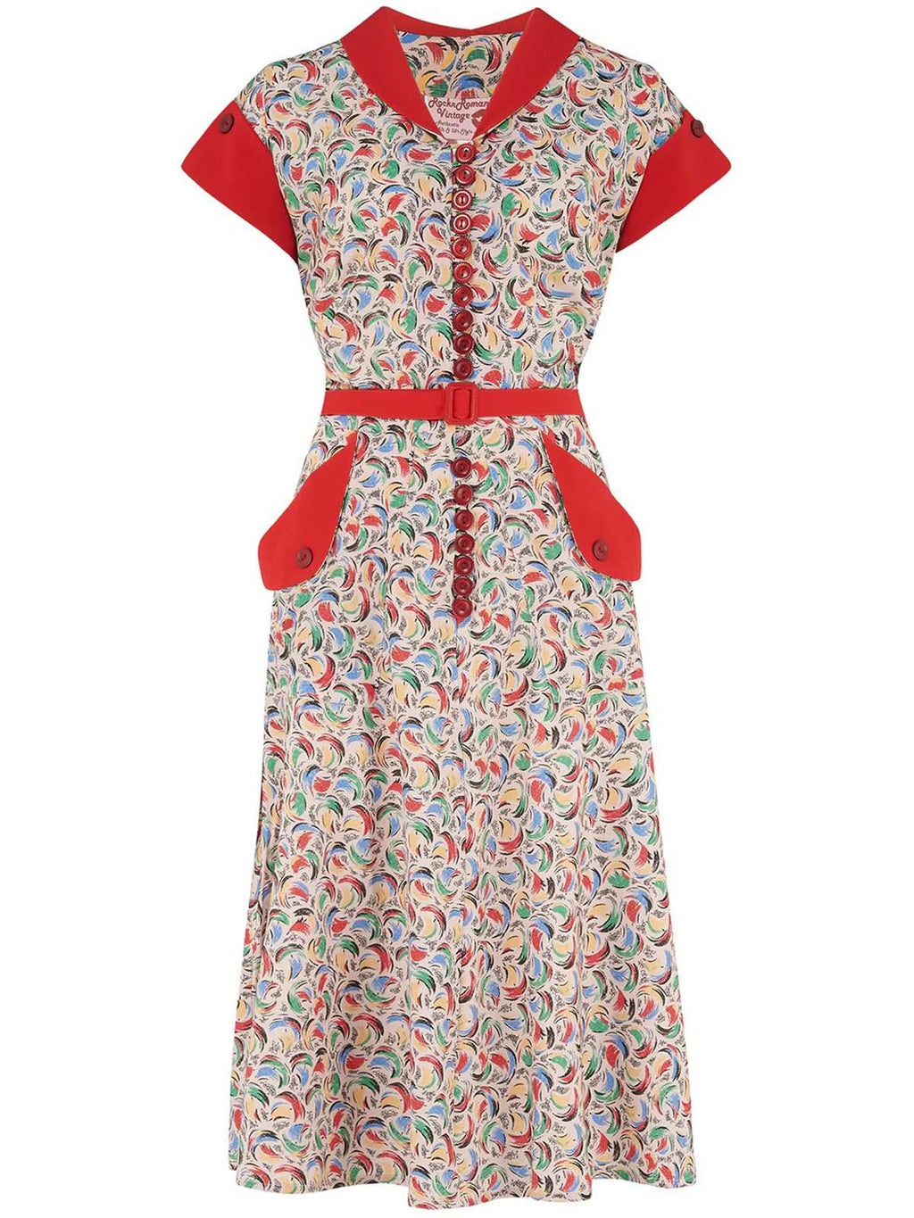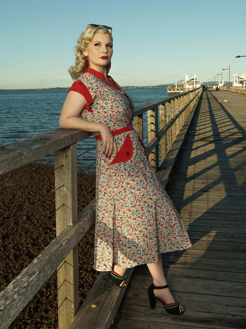 Vintage 1950s Style Colourful Buttoned Day Dress