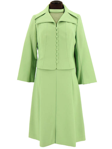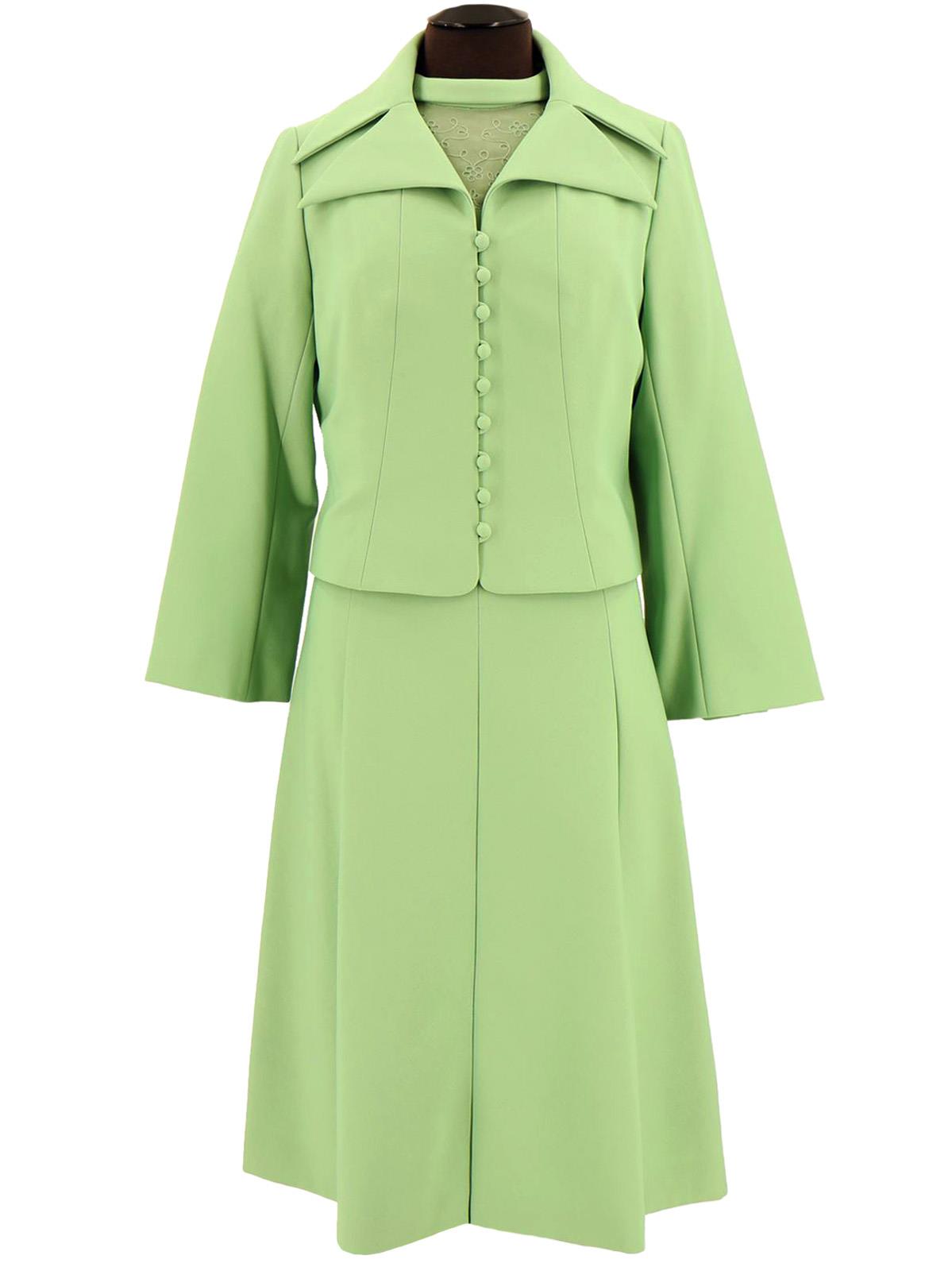This fabulous apple green vintage sixties suit consists of an occasion dress and a matching jacket.