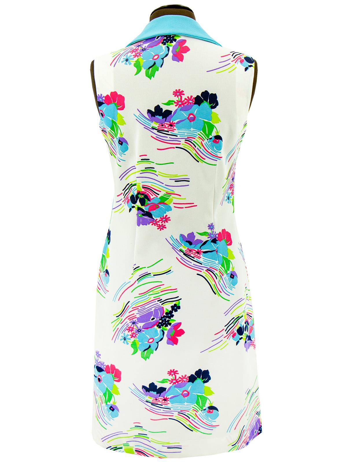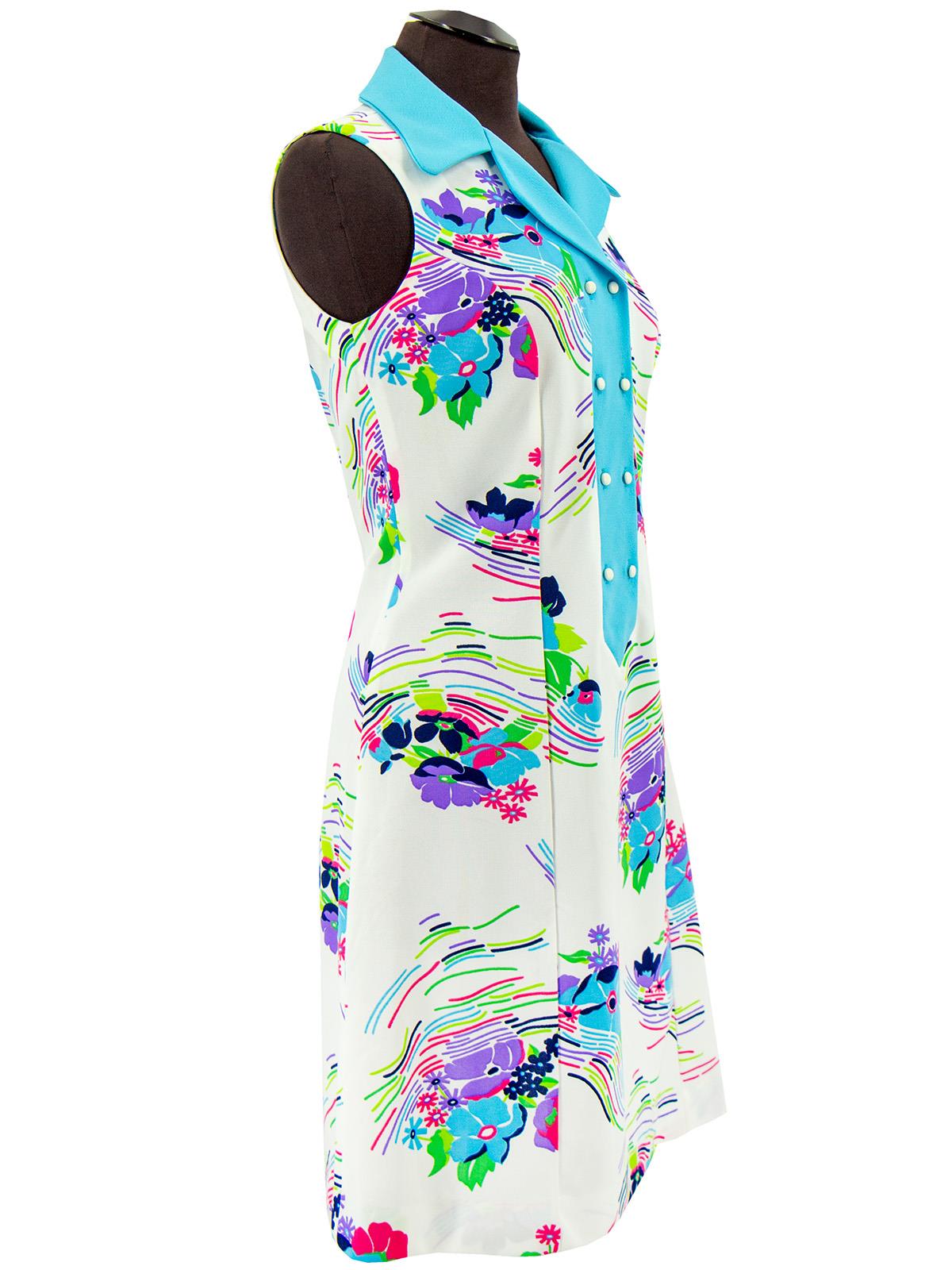Vintage 1960s Floral Double Breasted Sleeveless Dress