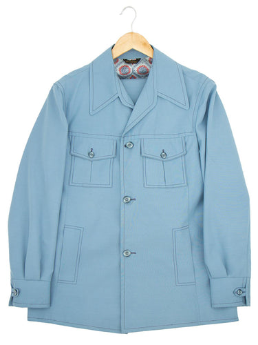An original 1970s blue safari suit. Complete with two iconic patch pockets, elongated collar and button fastening.
