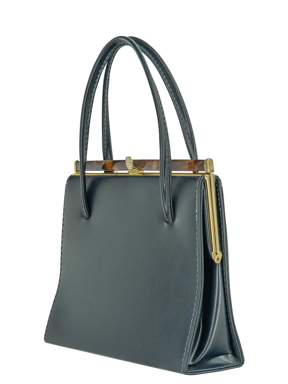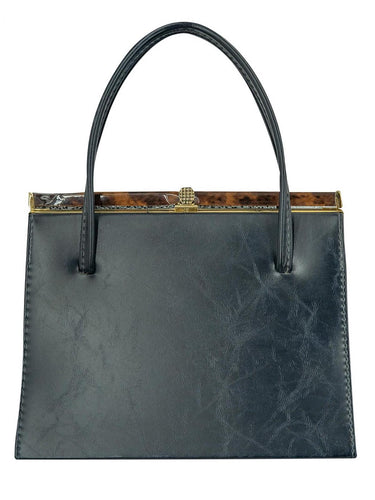 This classic frame bag is in a grainy faux leather to accessorise clothing from across the mid-century era.