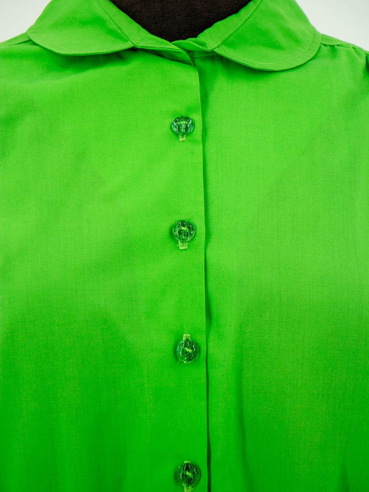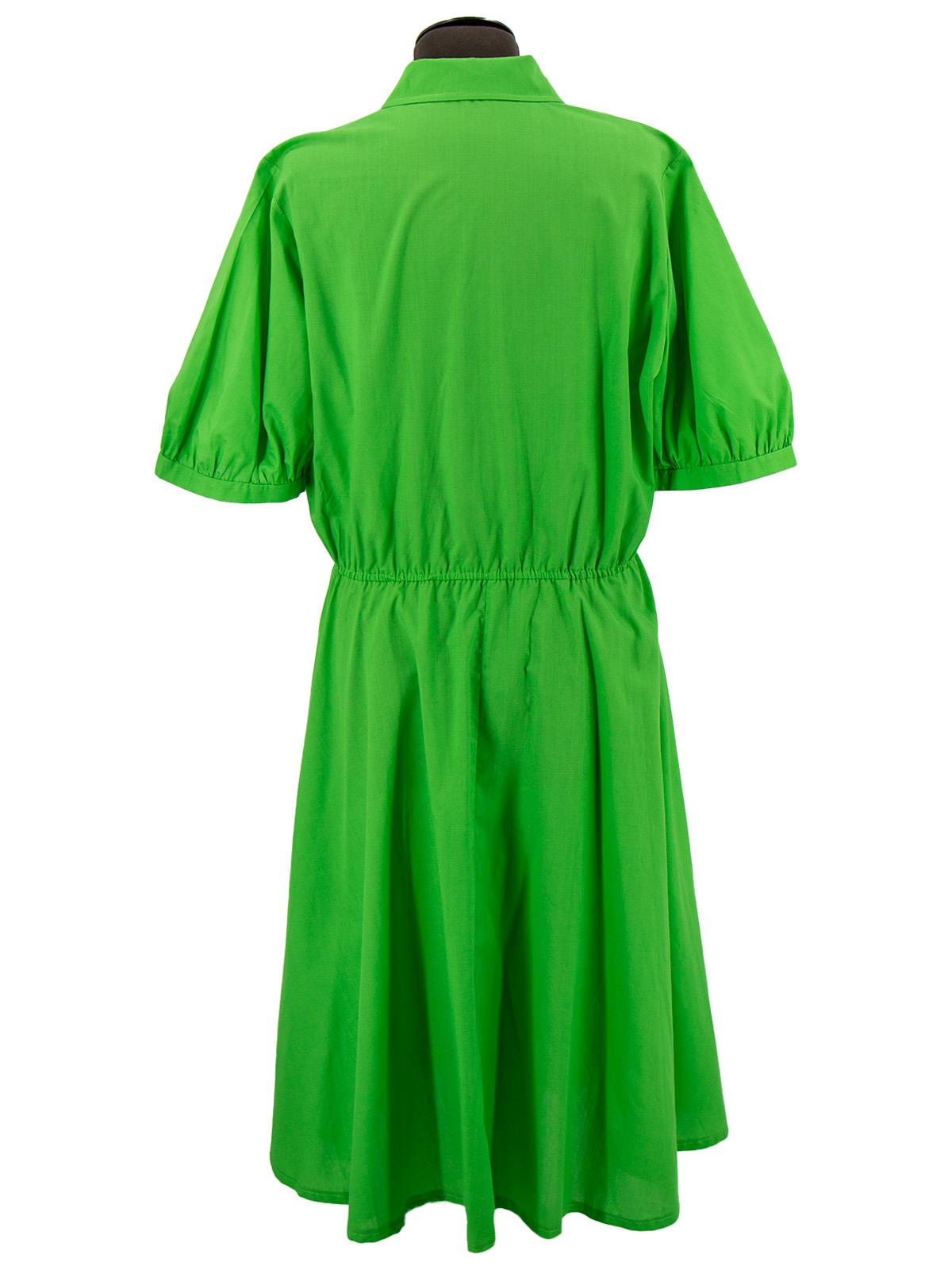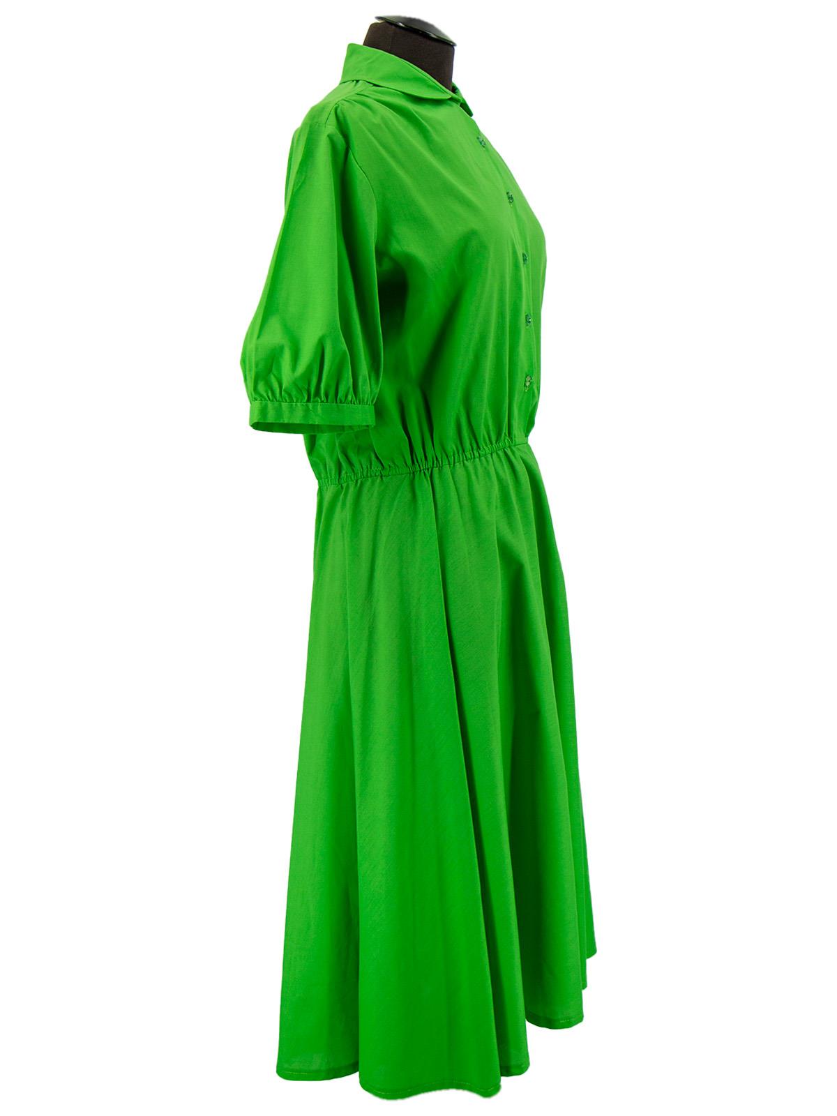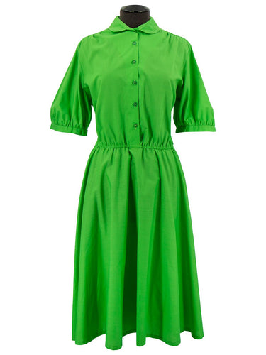 A vivid green, vintage, summer midi dress that is both lightweight and cool cotton.