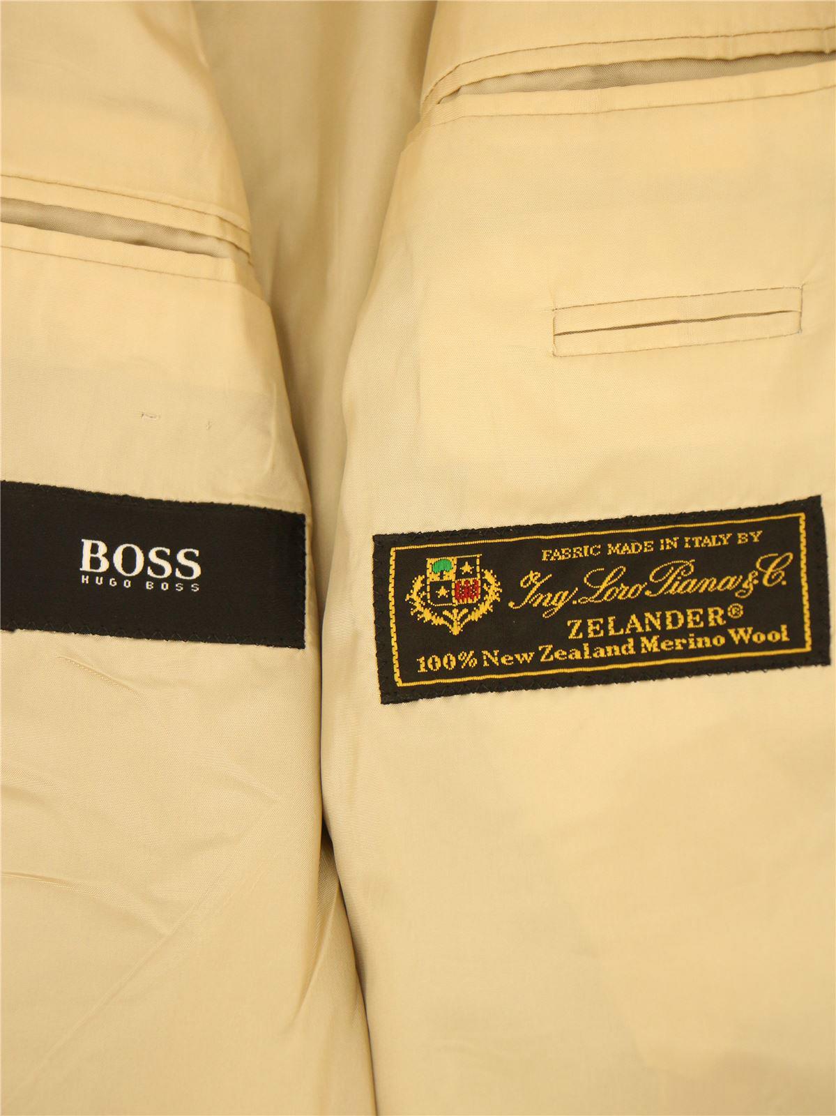 This luxurious true vintage check jacket is made of 100% New Zealand Merino wool for Hugo Boss. A classic style in a light sandy shade, easily paired with a cravat and trousers for a dapper retro look.