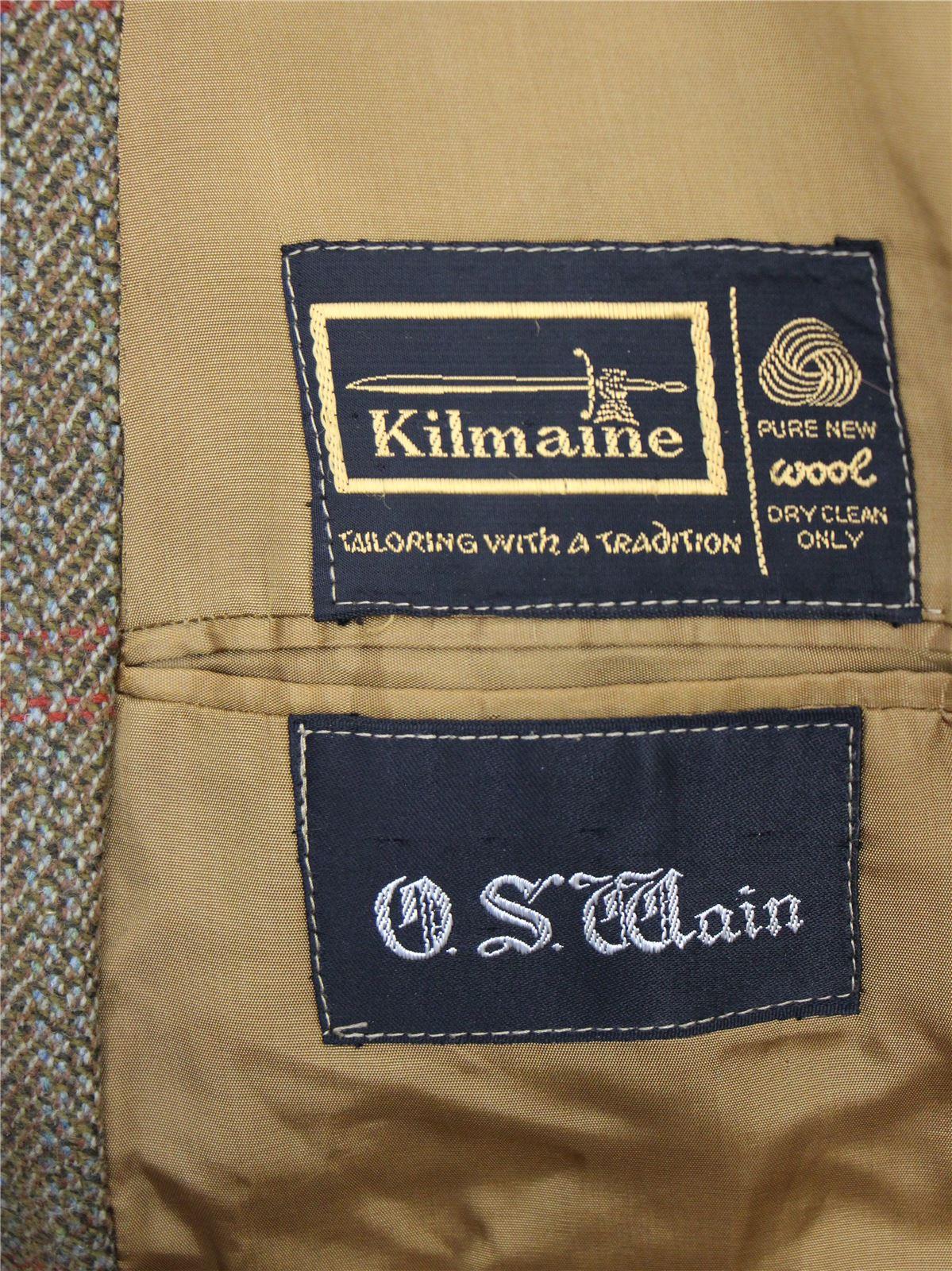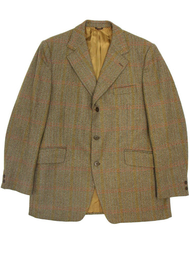 This vintage Kilmaine label jacket is made of high-quality pure new wool fabric, in a classic green tweed with a red and yellow windowpane check.