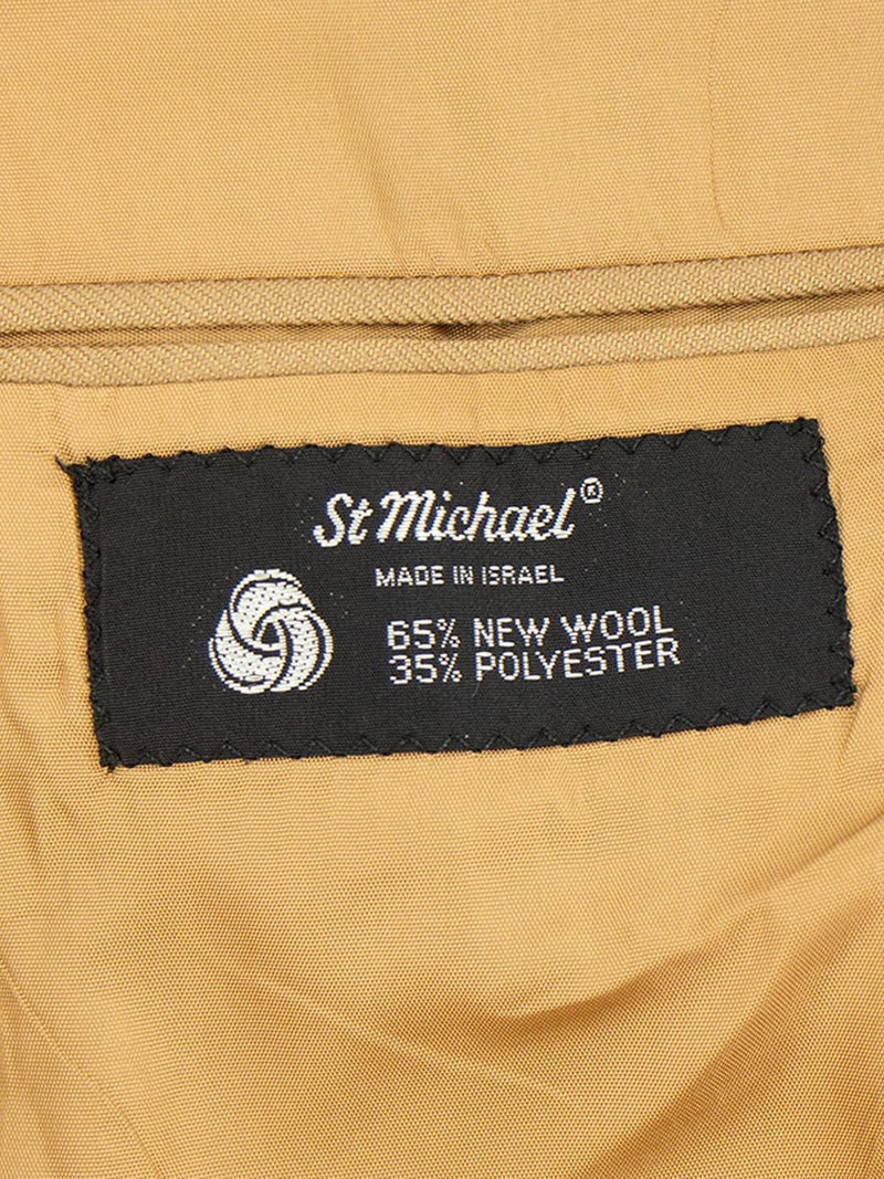 Vintage camel coloured M&S blazer in a classic wool blend, offering timeless style and easy wearability. The warm camel tone makes it a versatile piece, pairing effortlessly with both smart and casual vintage looks.
