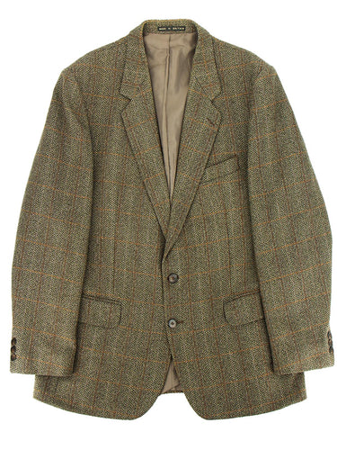 A vintage 100% pure new wool Greenwoods jacket. The woven check is a wonderful country palette of olive green, tan, beige and brown which makes it incredibly versatile to wear. Why not pair with some vintage-style jeans and a cravat for a smart casual vintage weekend look?