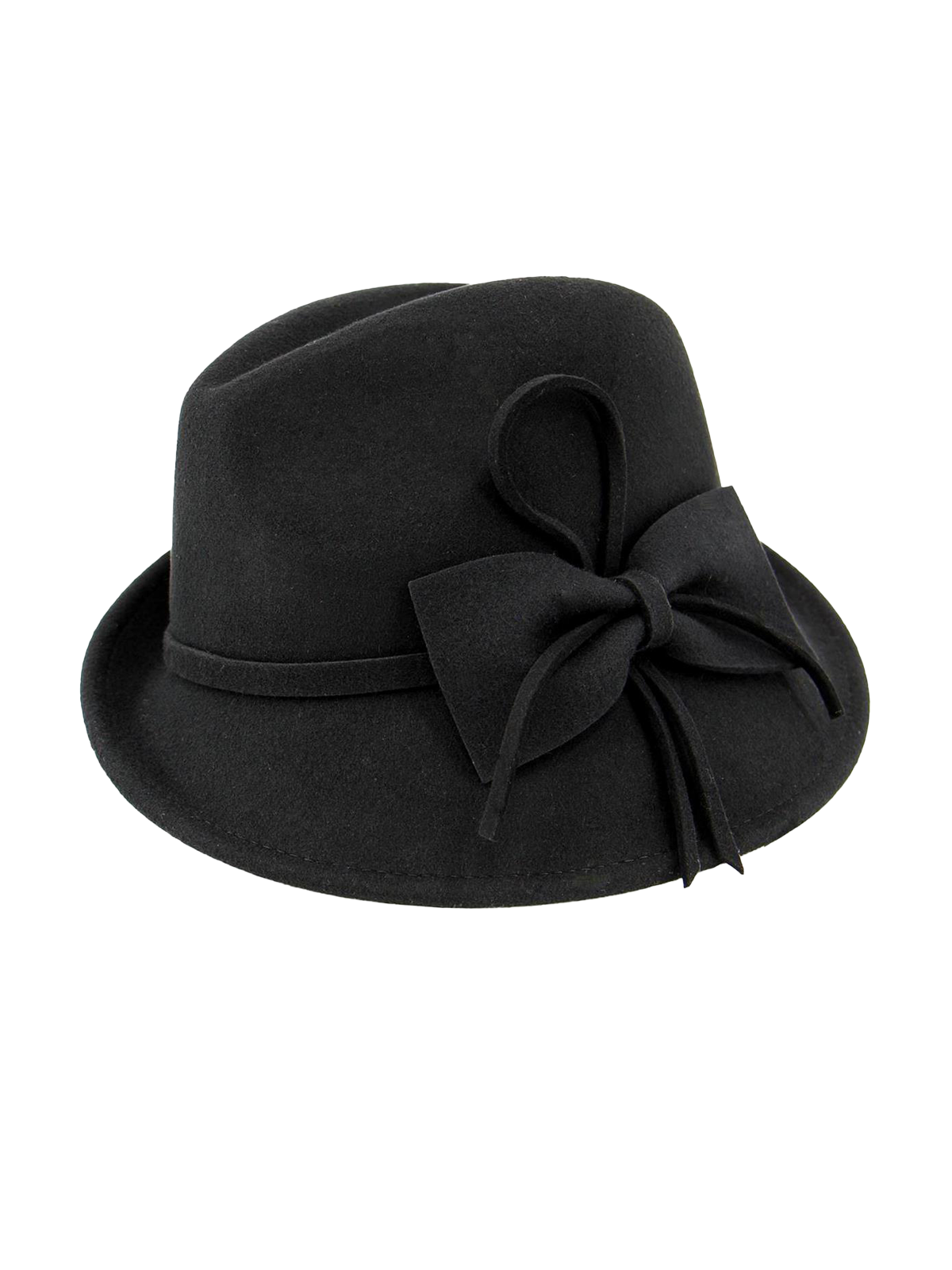 Vintage Style Black Wool Felt 1940s Trilby Hat
