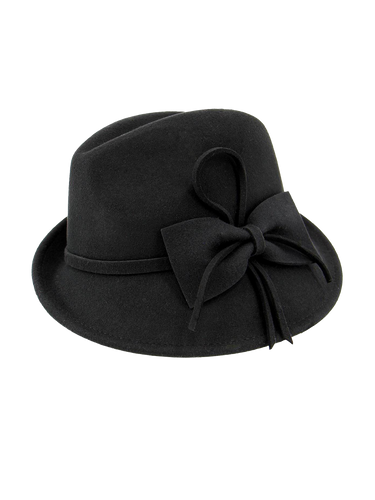 Sits nice and low on the head to give a stylish and authentic forties look. Trimmed with a narrow hatband and bow.