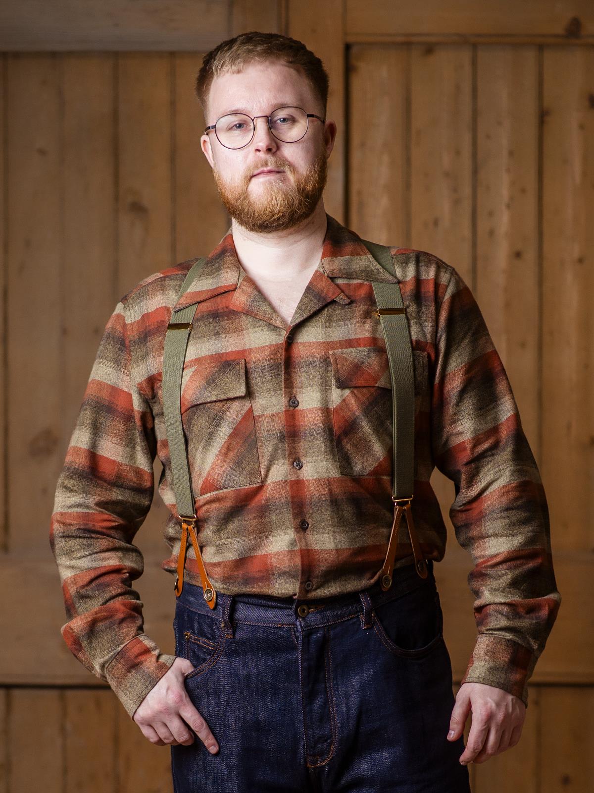 This Socialite collection shirt was designed for the colder months in a cosy brushed cotton, inspired by a more relaxed look 1950s style. The brown and green tones of the check are perfect for outdoor adventures, or sitting by the fire. Perfect for layering with a vest or gilet or a stand-alone style statement.