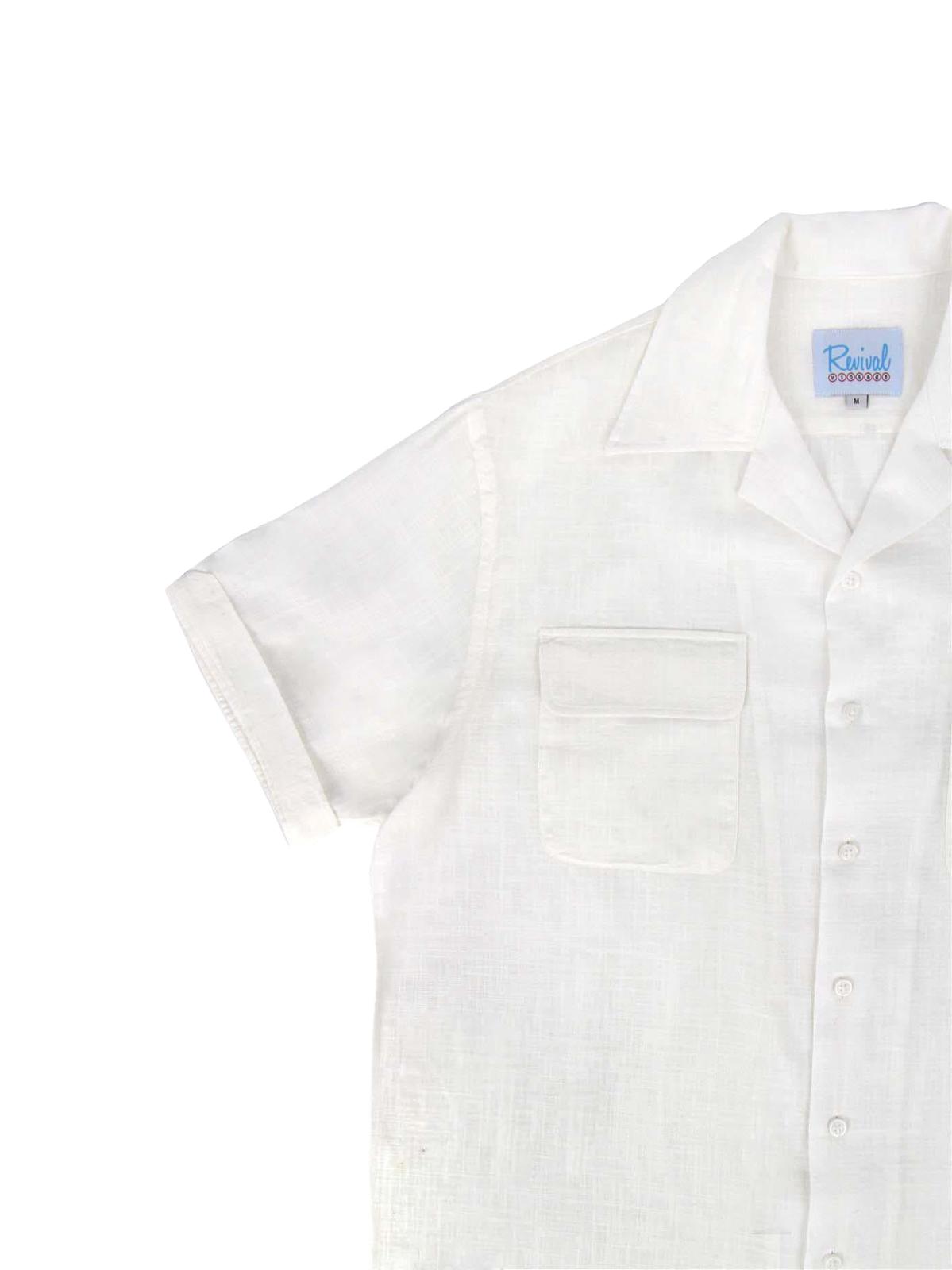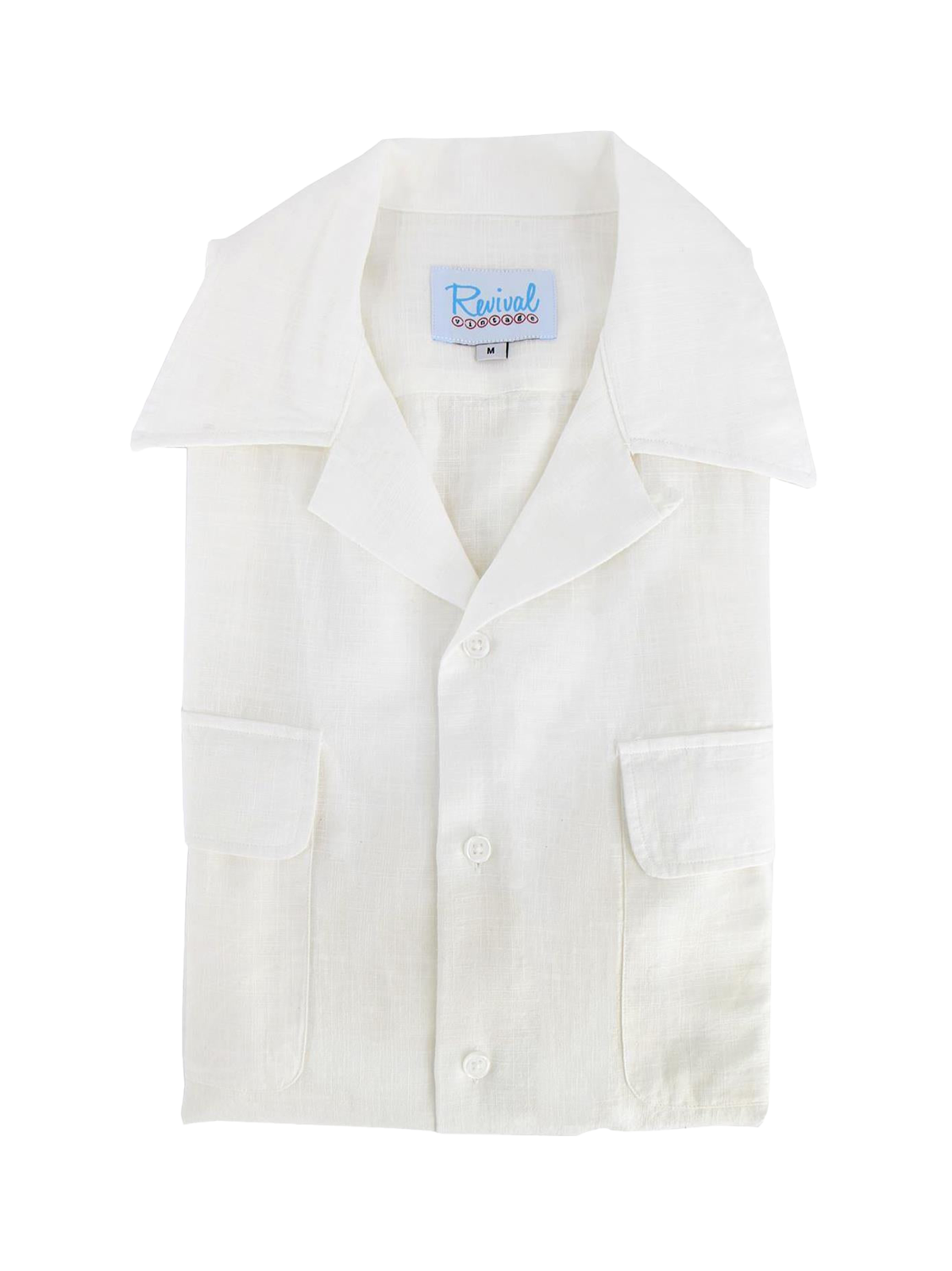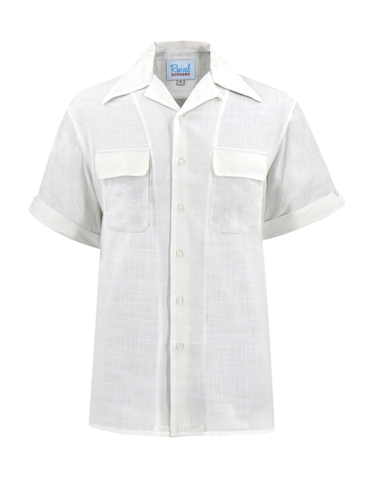 Taking cues from the style of the 1940s and 1950s, we offer this classic white leisure shirt. The shirt exudes a relaxed and yet stylish feel, and is crafted from lightweight cotton so as to be an easy choice in warmer weather.