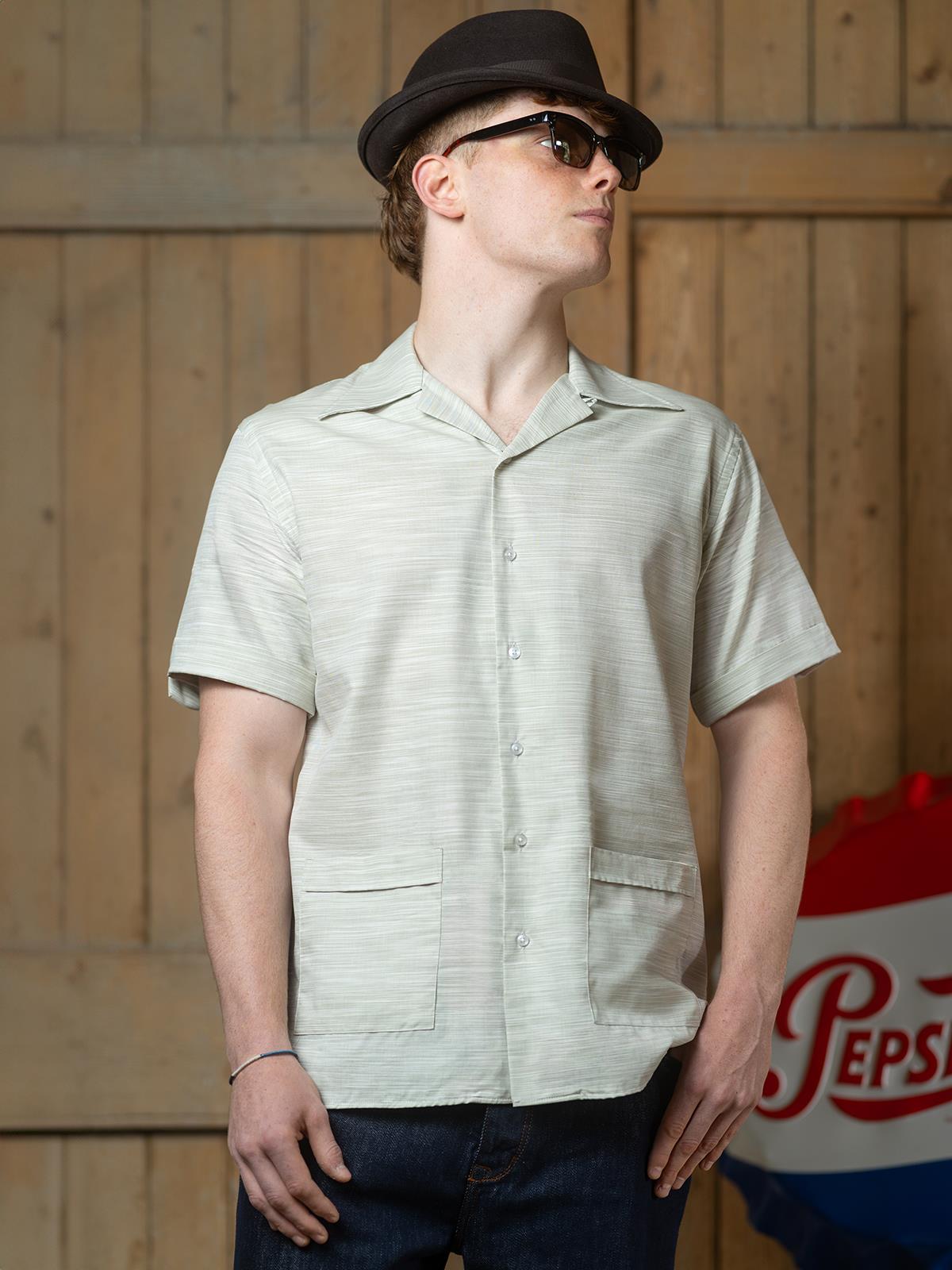 Capture the essence of laidback 1940s or 1950s menswear with this cotton shirt, crafted with a graduated green patterned cotton. No vintage enthusiast's wardrobe is complete without some easy-to-wear summertime staples.