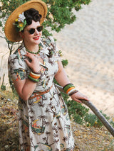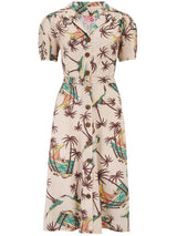 Vintage Style Cream Tahiti Print Shirtwaister Dress