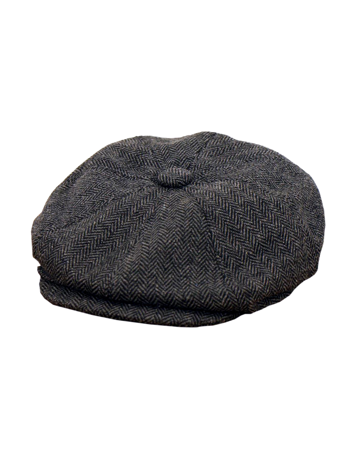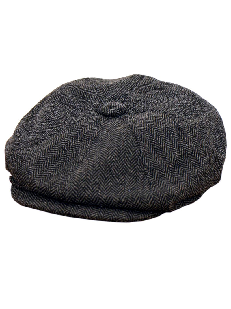 Vintage Style Dark Grey Herringbone Newsboy Cap