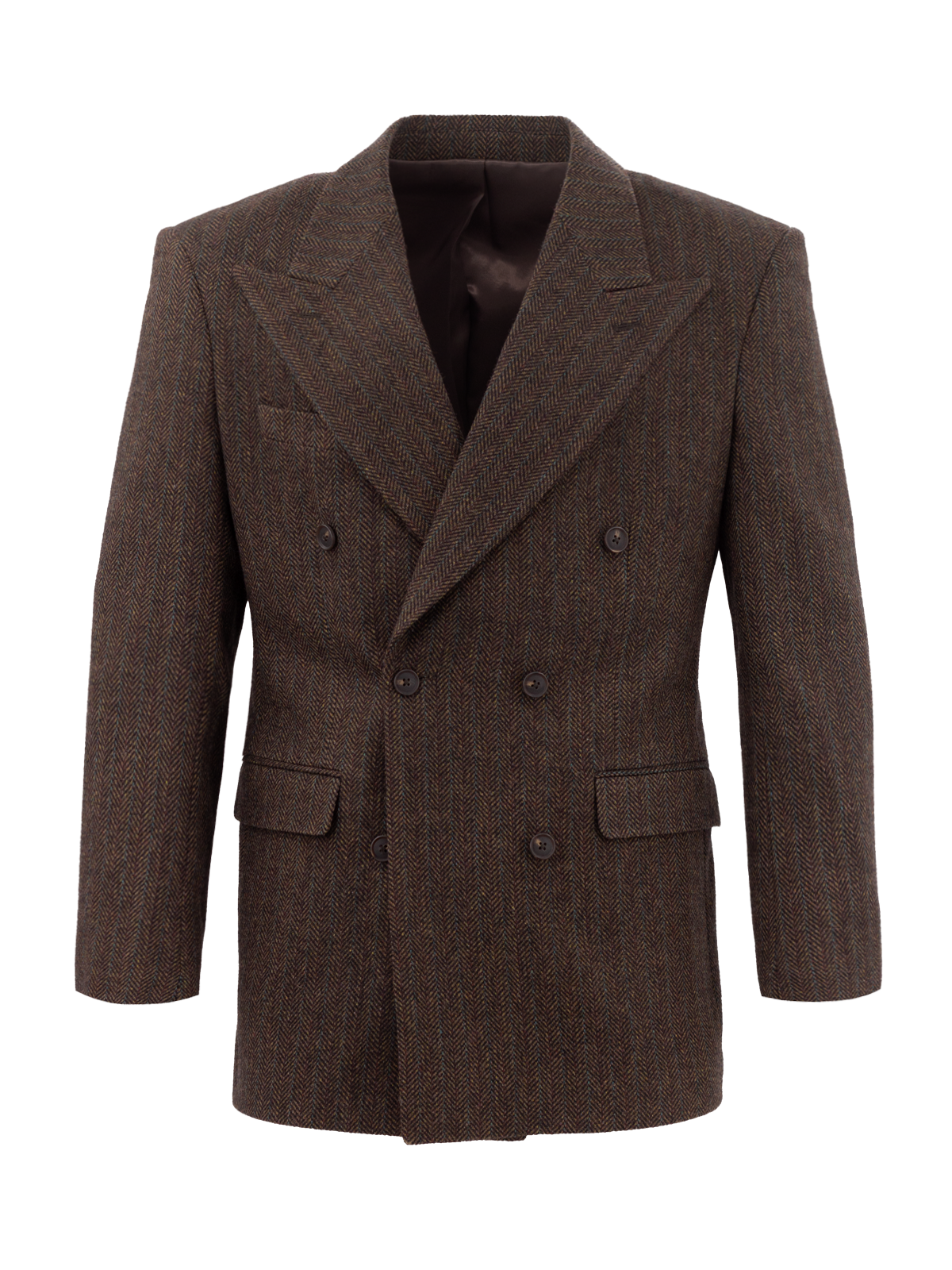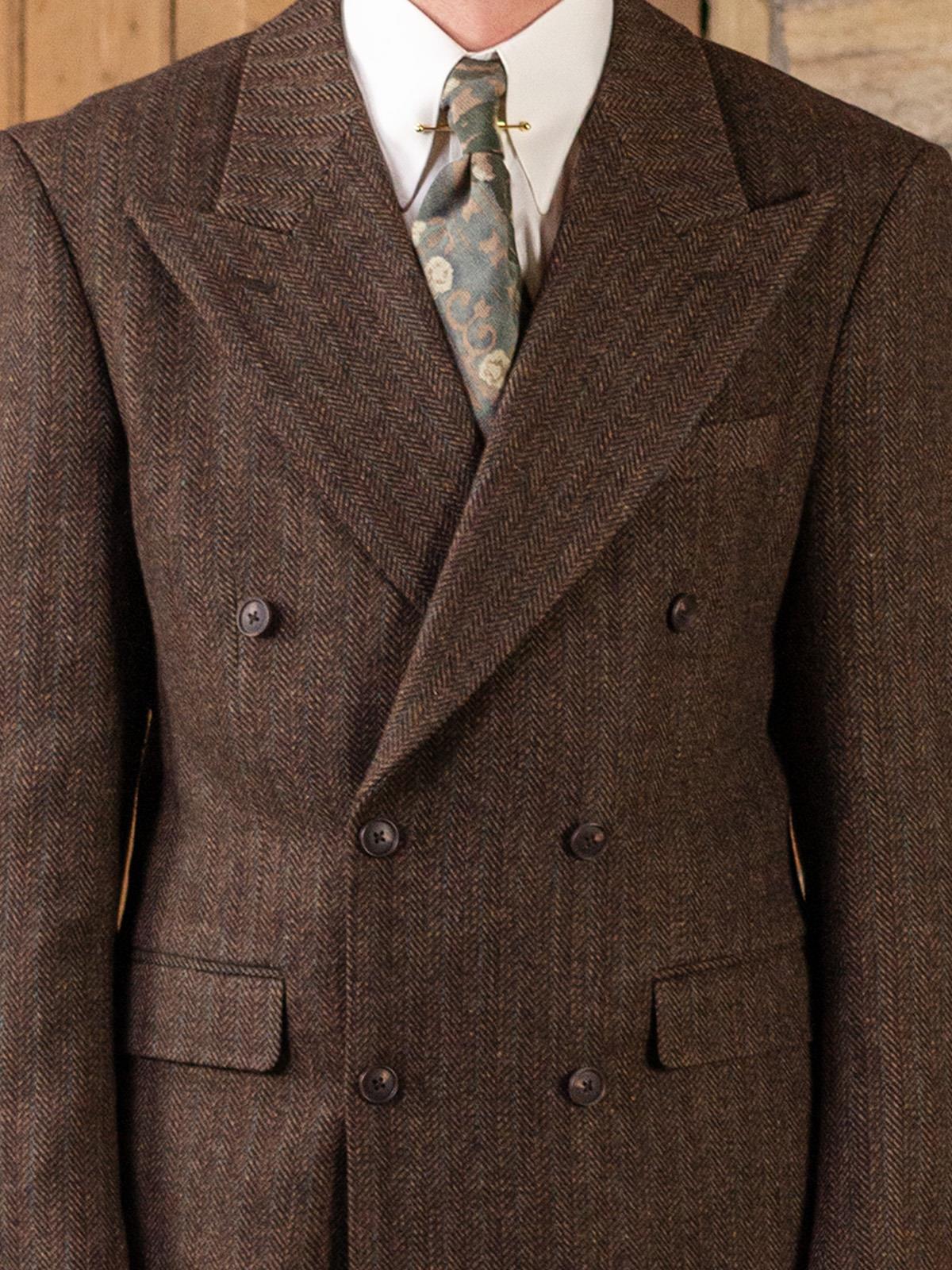 Vintage Style Deliverance Double Breasted Jacket - Brown Herringbone