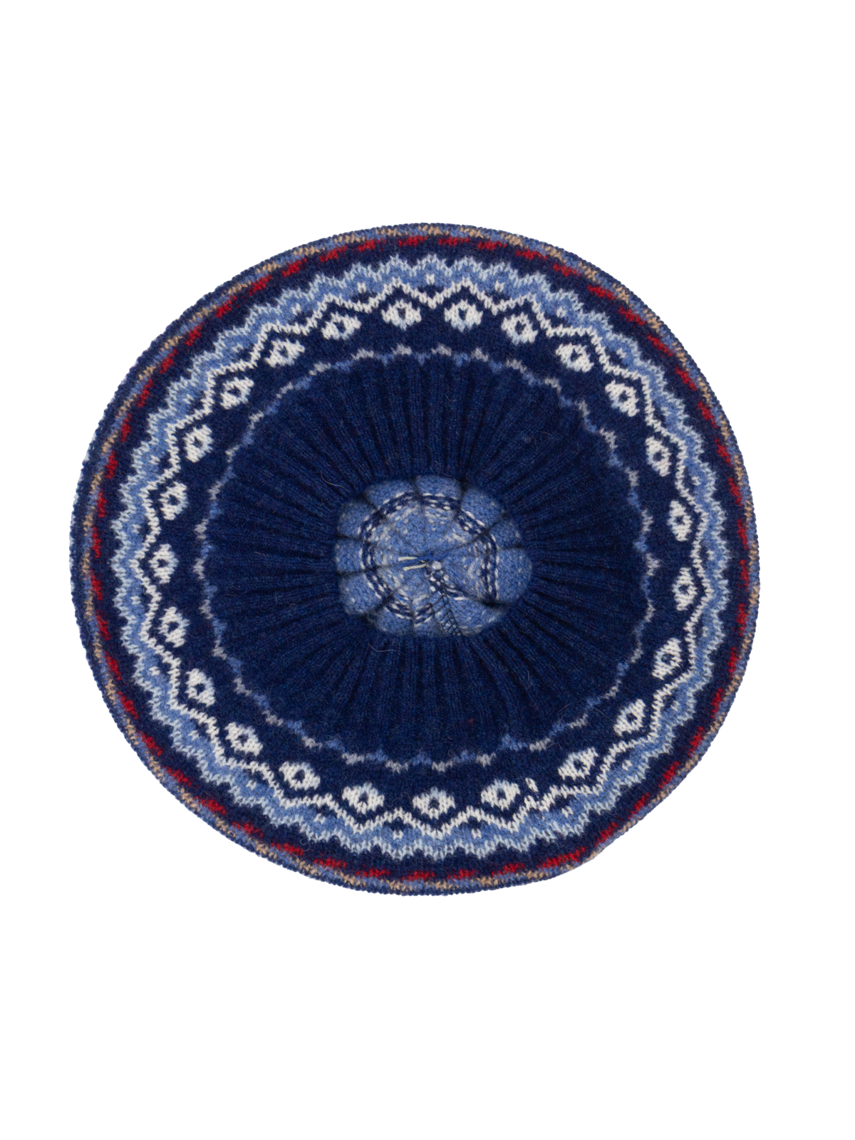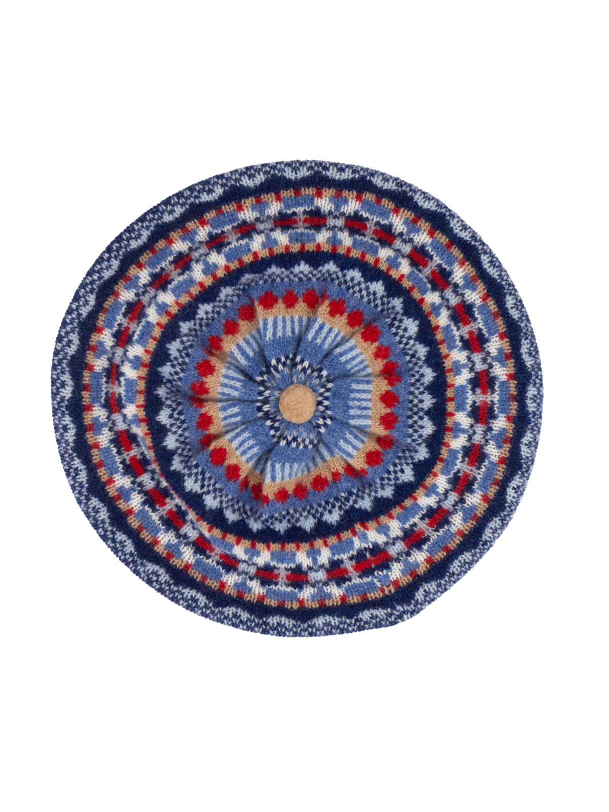 Vintage Style Fairisle Wool Beret - Classic Blue
