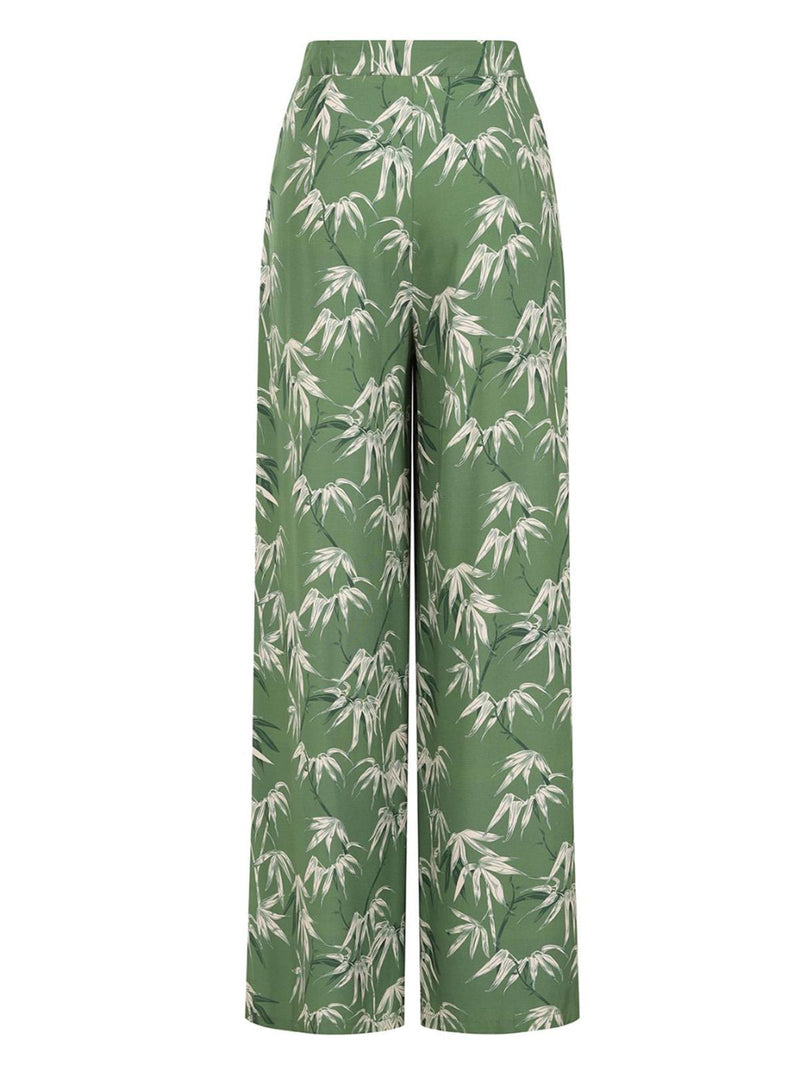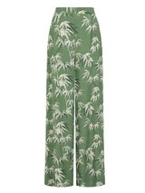Classic vintage style wide leg, highwaisted trousers, in vibrant green with palm print.