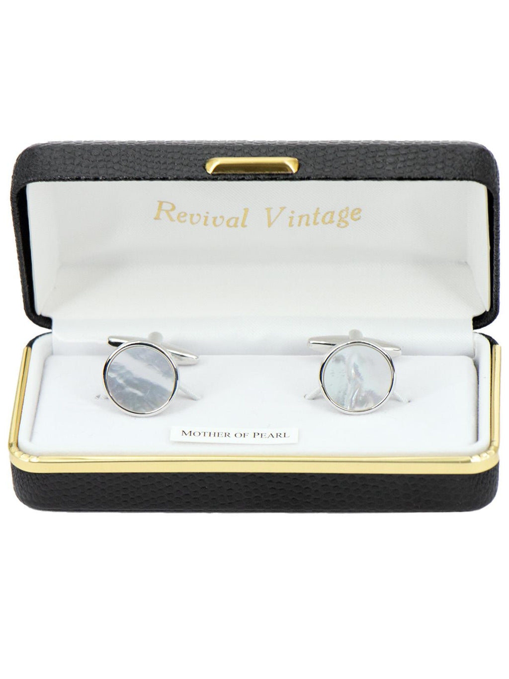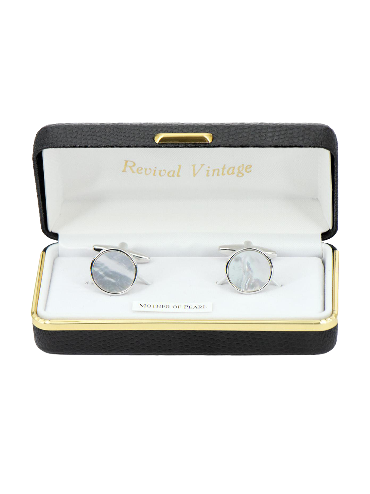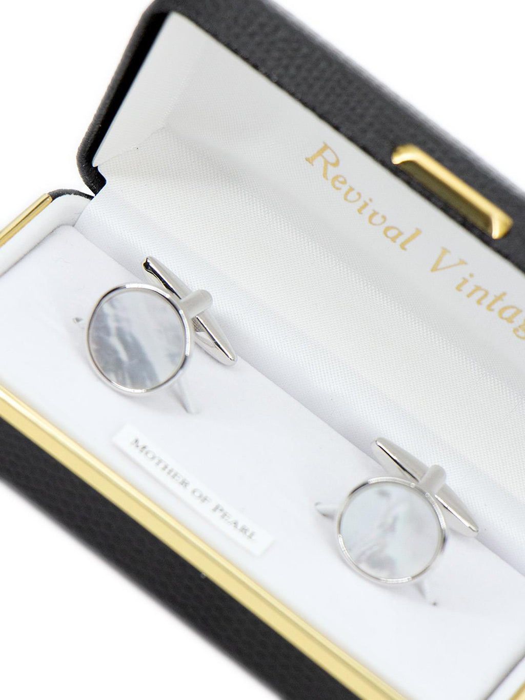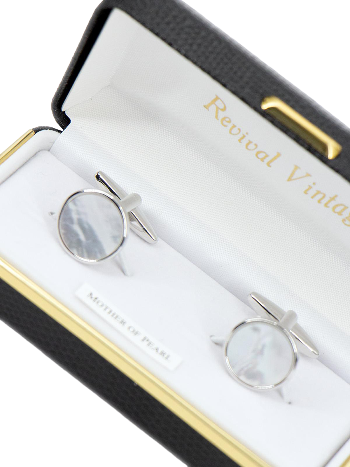 Vintage Style Round Mother of Pearl Silver Cufflinks